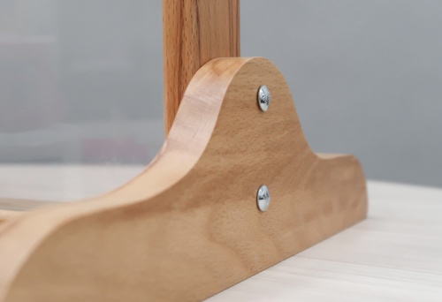 Прозрачный мольберт выполнен из натурального дерева и оргстекла, имеет широкие устойчивые ножки-опоры, является переносным, может располагаться как на полу, так и на столе или других рабочих поверхностях. Для работы часто используются пальчиковые краски, поэтому комплекс может сопровождаться набором таких красок основных цветов. В комплект входят инструменты для изотерапии и развивающих упражнений: кисти, валики для закрашивания, специальный коврик для защиты рабочей поверхности. Комплектация арт-терапевтического комплекса не является строго фиксированной и может меняться.