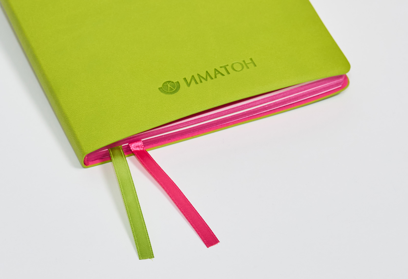 Фирменный блокнот с логотипом Компании «Иматон» для важных записей, хороших мыслей и бережного хранения любого вдохновения.
