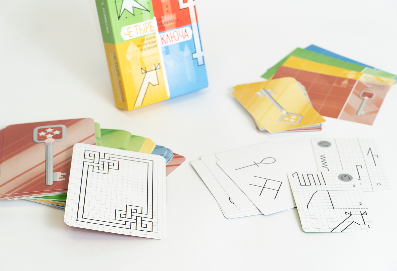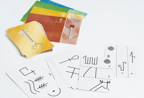 Задача игроков — передвигать по полю свою фишку так, чтобы раньше других дойти до противоположной по диагонали клетки, отмеченной меткой-«башенкой», собрав при этом четыре разных по цвету «ключа». Четыре «ключа» — это правильно выполненные задания четырех типов: копирование, воспроизведение образца по памяти, преобразование изображения и выполнение задания по словесной инструкции. Игровой набор разработан нейропсихологами для поэтапного формирования пространственных представлений, внимания, памяти, умения действовать по инструкции. Карточки может использовать как специалист (нейропсихолог, психолог, логопед и т.д.) в коррекционных и диагностических целях, так и родитель или любой взрослый, задача которого — с пользой и интересом провести время вместе с ребенком или с небольшой группой детей.