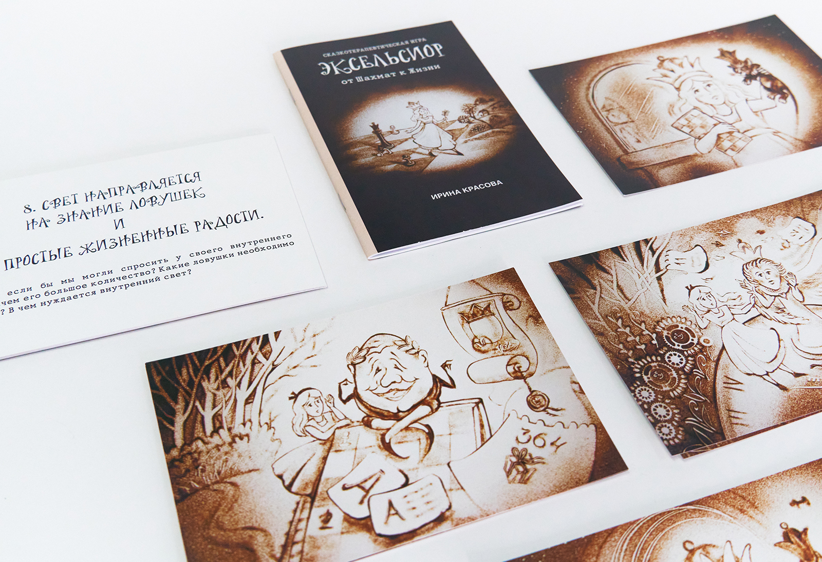 Психологическая сказкотерапевтическая игра, основанная на сказке Льюиса Кэролла «Алиса в Зазеркалье» и способная открыть суть происходящих событий в судьбах людей, пробудив их к жизни. Эксельсиор - разновидность шахматной задачи, когда пешка из первоначального положения ход за ходом движется в ферзи. Так и в игре Алиса в роли пешки ход за ходом, преодолевает препятствия, борется со злом, проходит разные инициации и, в конце концов, достигает цели – становится Королевой. Цель игры: пробудить любовь к жизни, укрепить нравственные ценности, впустить добро в сердце. Помочь людям справиться в сложное время и наполнить свой внутренний мир светом. Подходит для мужчин и женщин старше 12 лет.