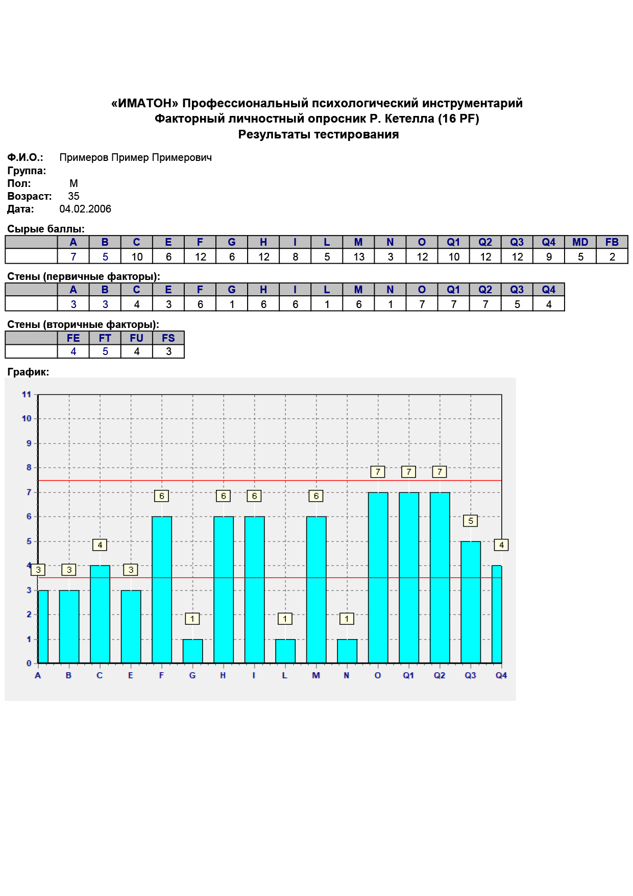 16-ти факторный личностный опросник Кеттелла был создан для диагностики взрослых в самых различных ситуациях, и в отличие от многих личностных опросников, предназначен, в первую очередь, для оценивания нормальной личности. Он позволяет подробно описать личностную структуру, выявить внутриличностные проблемы, найти компенсаторные механизмы для поддержания психического здоровья.