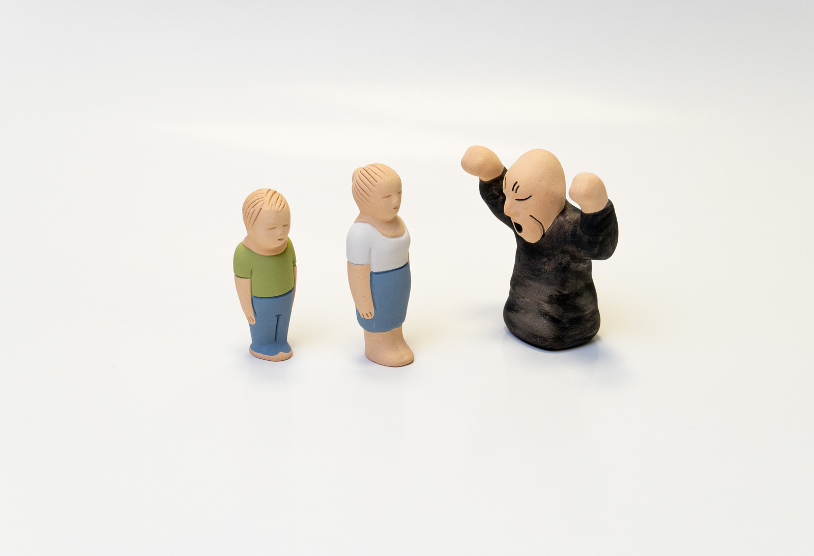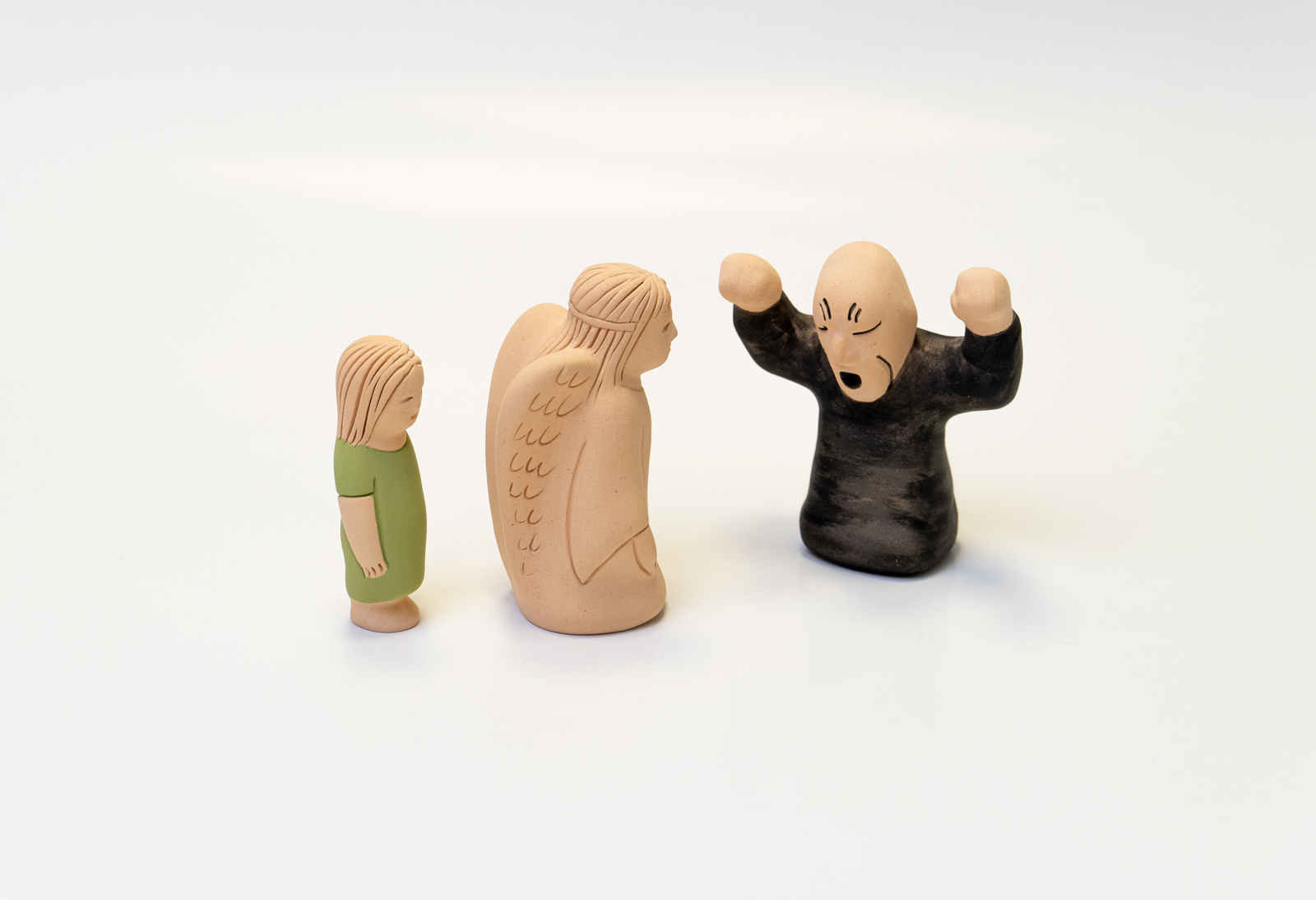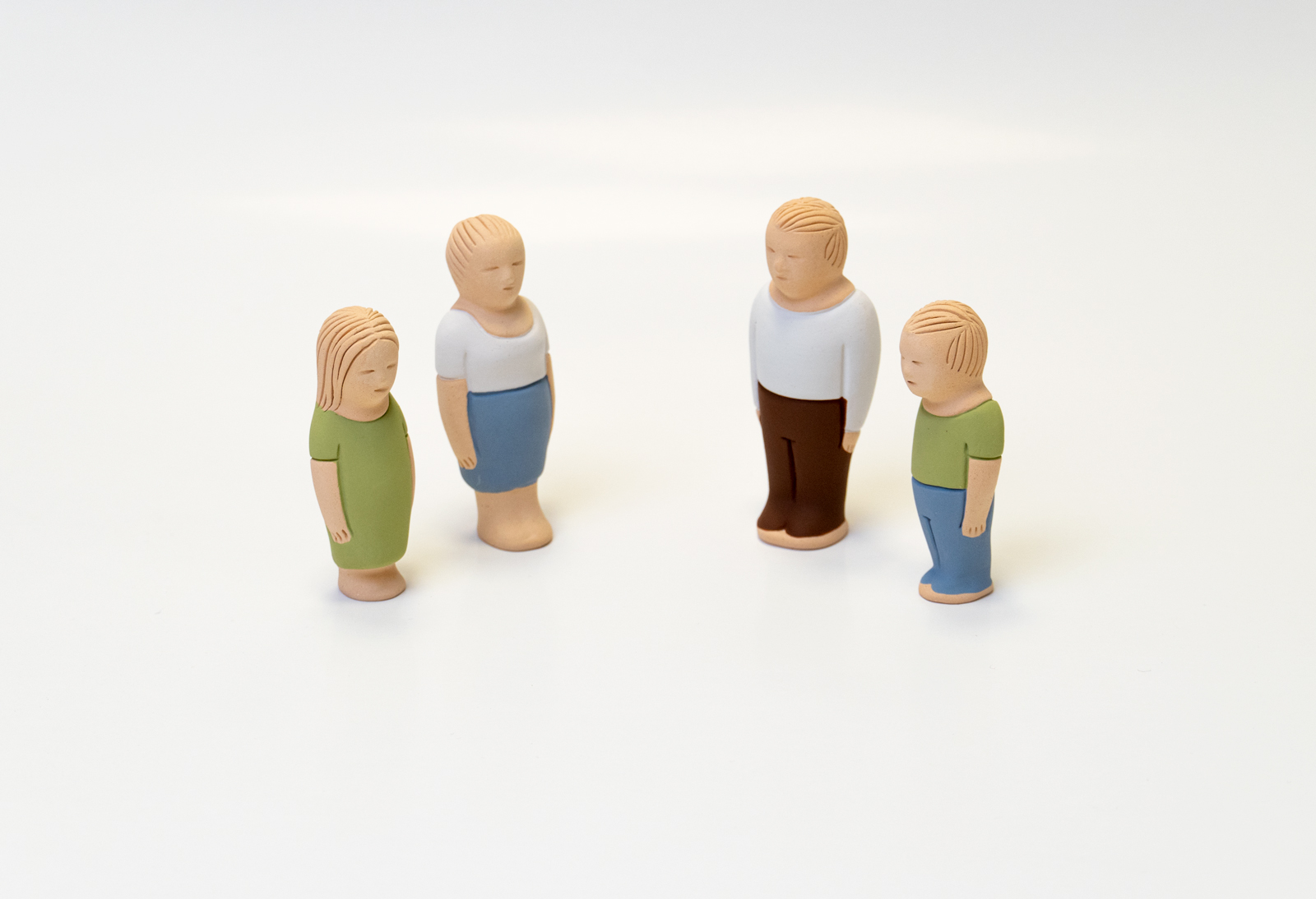 Фигуры выполнены из глины и раскрашены вручную. Глина – природный экологически чистый материал, устойчив к абразивному воздействию сухого песка, не вызывает аллергии. Размер фигурок – 6-9 см: они легко умещаются в ладони, не вызывая чувства дискомфорта.
