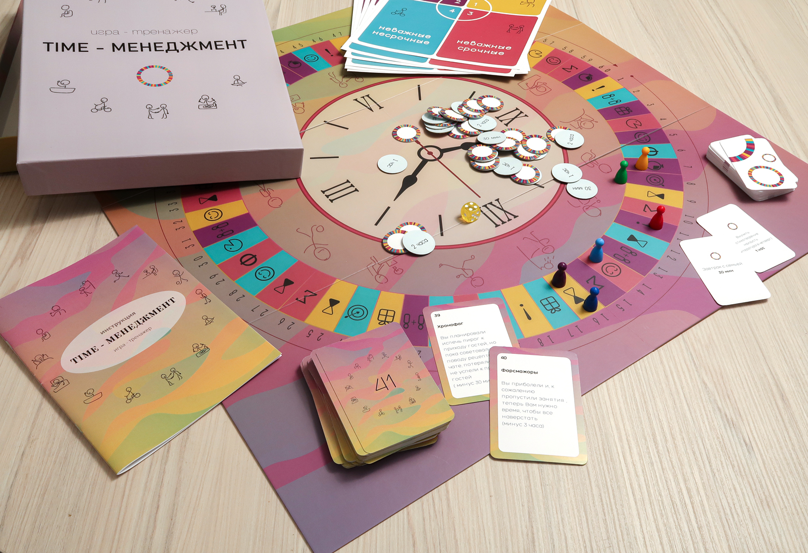 - 15 карт с запланированными делами на каждого игрока