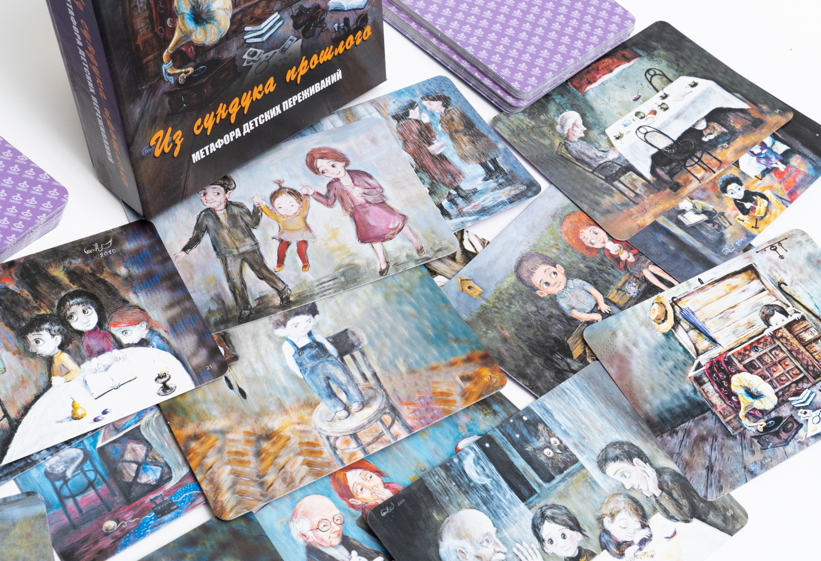 Комплект включает в себя репродукции картин грузинской художницы Нино Чакветадзе и маленькие карточки со словами и словосочетаниями. Все это вместе – инструмент работы практического психолога, называемый метафорическими картами. Карты могут использоваться в консультировании, психотерапии, коучинге, в групповой и индивидуальной работе с детьми и взрослыми. Несмотря на то, что в название предлагаемого набора вынесены слова «Детские переживания», эти карты предназначены прежде всего для работы со взрослыми. Предлагаемый набор карт призван помочь всем – и психологам, и их клиентам, поговорить о детстве, воскресить в памяти его картинки, ощутить запахи и звуки.