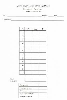 Ключи к Цветным прогрессивным матрицам Равена (классическая форма)