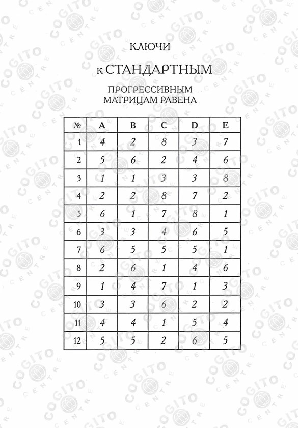 Ключи к Стандартным прогрессивным матрицам Равена (классическая форма)