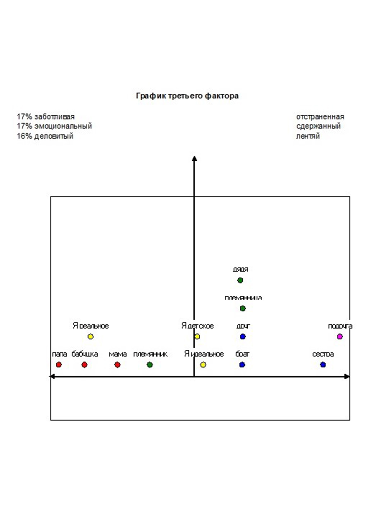 - Формирование списка персонажей. Стандартный репертуар основан на ролевых позициях личности Э.Берна (позиции «Я-Родитель», «Я-Взрослый» и «Я-Ребенок»). Данный репертуар ролевых позиций подходит для обследования большинства взрослых людей при самом широком круге психологических проблем. Он включает 9 персонажей, имена или социальные роли которых вносятся испытуемым в определенные ролевые группы. Кроме того, список персонажей дополняется персонажами «Я-идеальное», «Я-реальное» и «Я-детское».