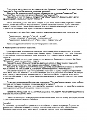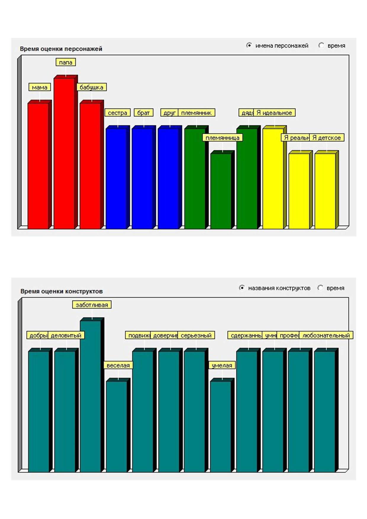 - Оценивание персонажей по конструктам. На данном этапе испытуемому предлагается оценить каждый персонаж по всем выявленным конструктам. То есть, все качества, свойства и характеристики, определенные ранее, применить к каждому персонажу, определив, подходит ли оно ему. Оценка выставляет простыми знаками «+» и «-».