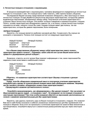 - выявление противоречивости жизненной позиции личности, которая может становиться причиной межличностных конфликтов, психосоматических заболеваний и нарушений невротического плана.