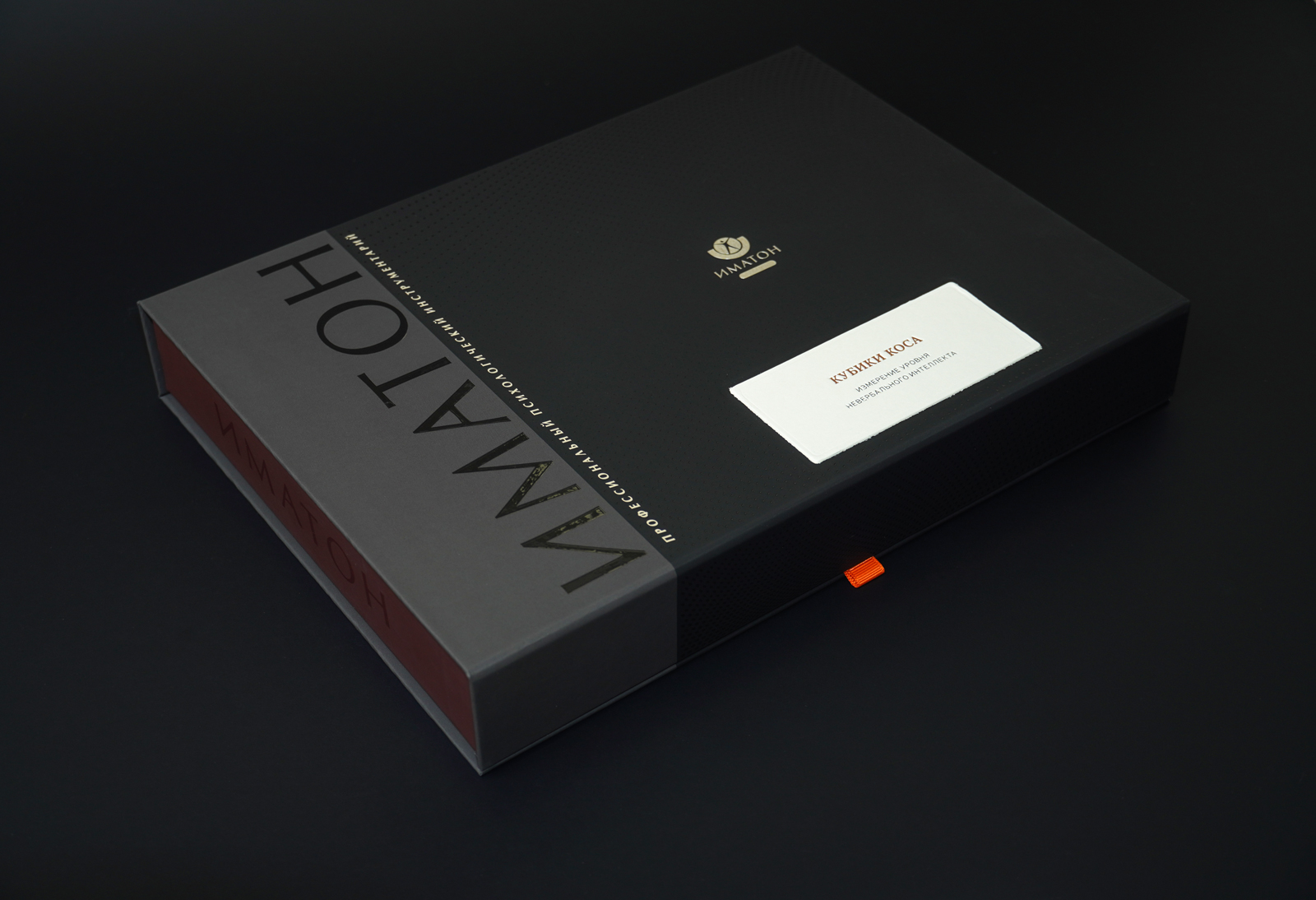 - набор из 9-ти одинаковых кубиков, стороны которых окрашены в белый и красный цвета. Две стороны кубика – белые, две другие – красные, и оставшиеся две – красно-белые по диагонали. Длина ребра кубика составляет 25 мм;