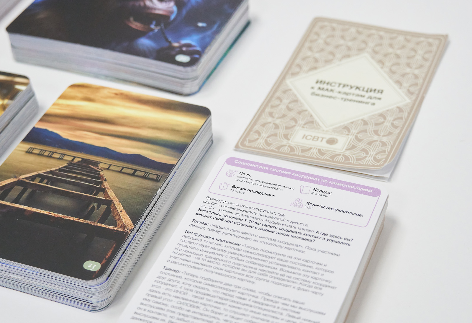 - колода с 60 карточками-инструкциями на все этапы тренинга