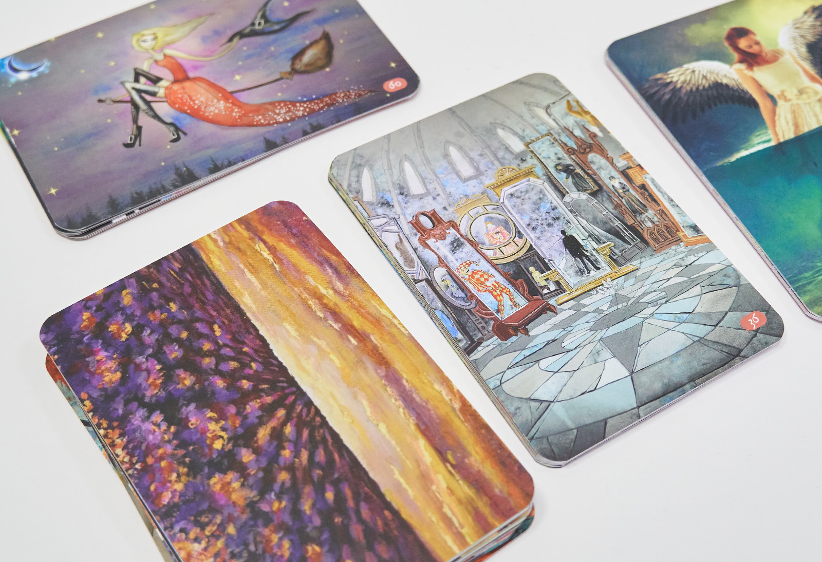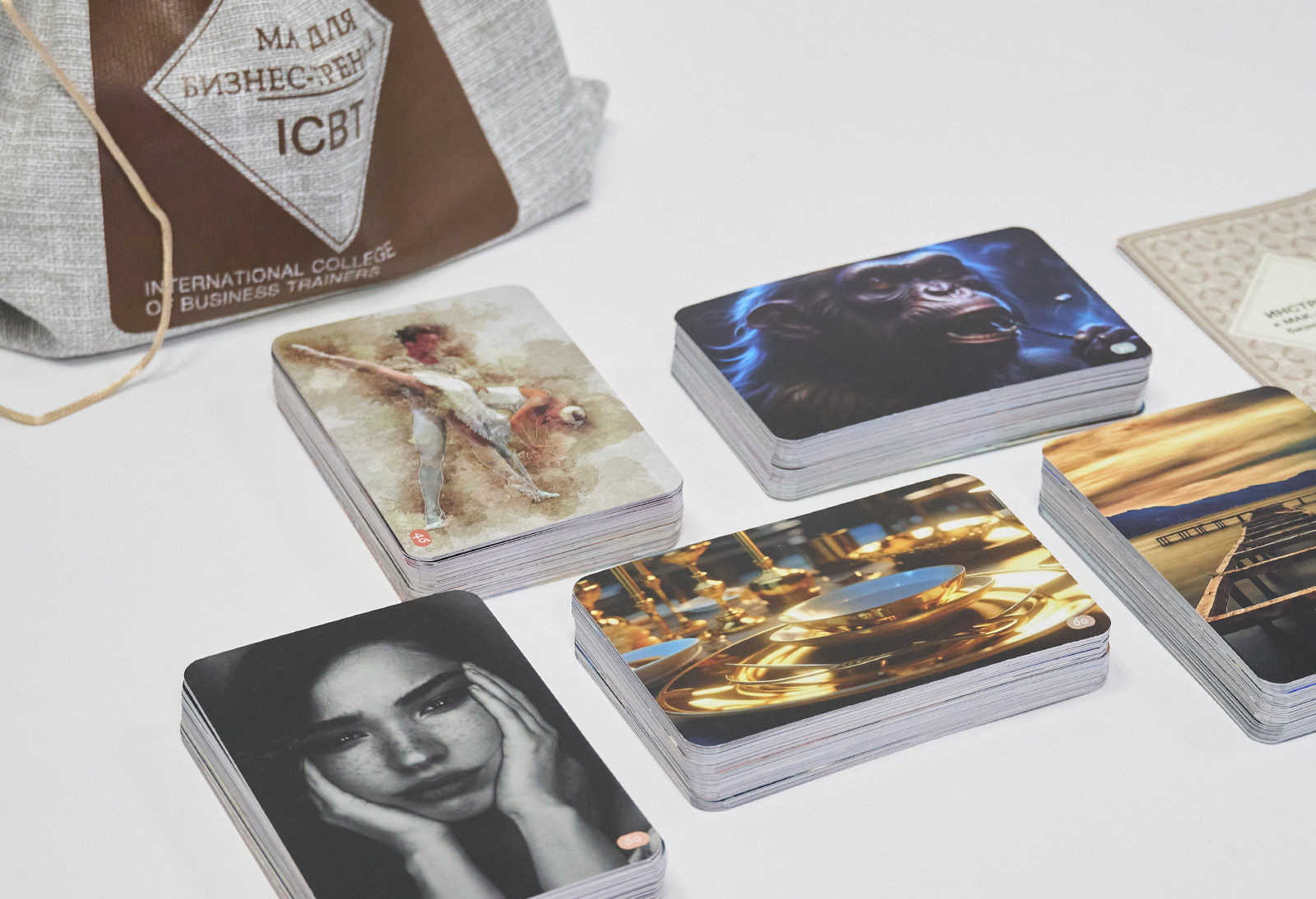 - 5 колод по 60 карточек-картинок для групповой наборы: лица, ценности, фантазии, мосты и картины известных художников