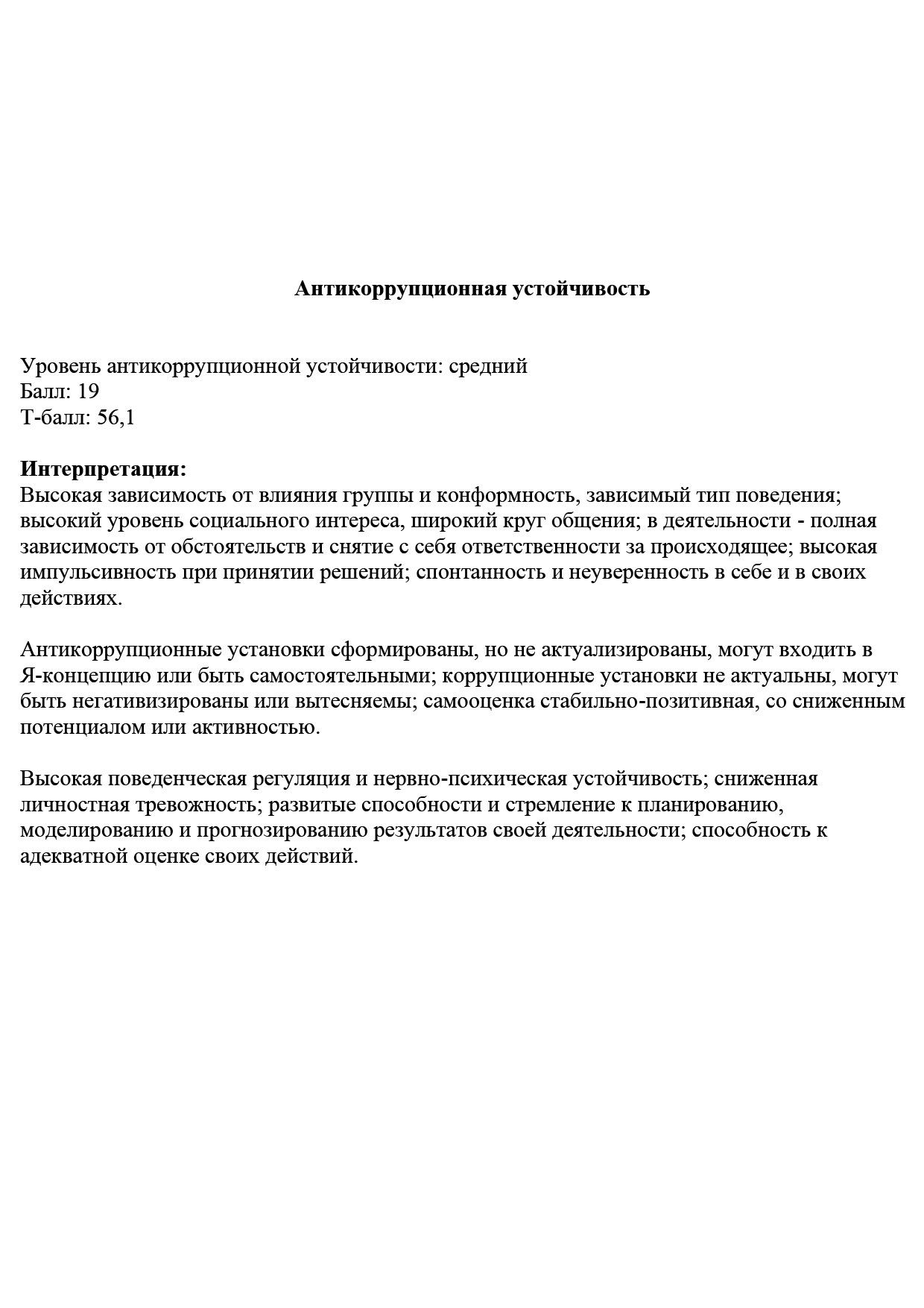- Эмоциональный уровень антикоррупционной устойчивости оценивается с помощью опросника, выявляющего способность человека к управлению своим эмоциональным состоянием или уровень его саморегуляции.