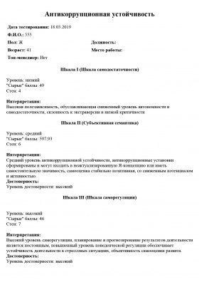 Компьютеризированная методика «АКорД» позволяет оценить антикоррупционную устойчивость человека на трех уровнях: ценностном, когнитивном и эмоциональном.