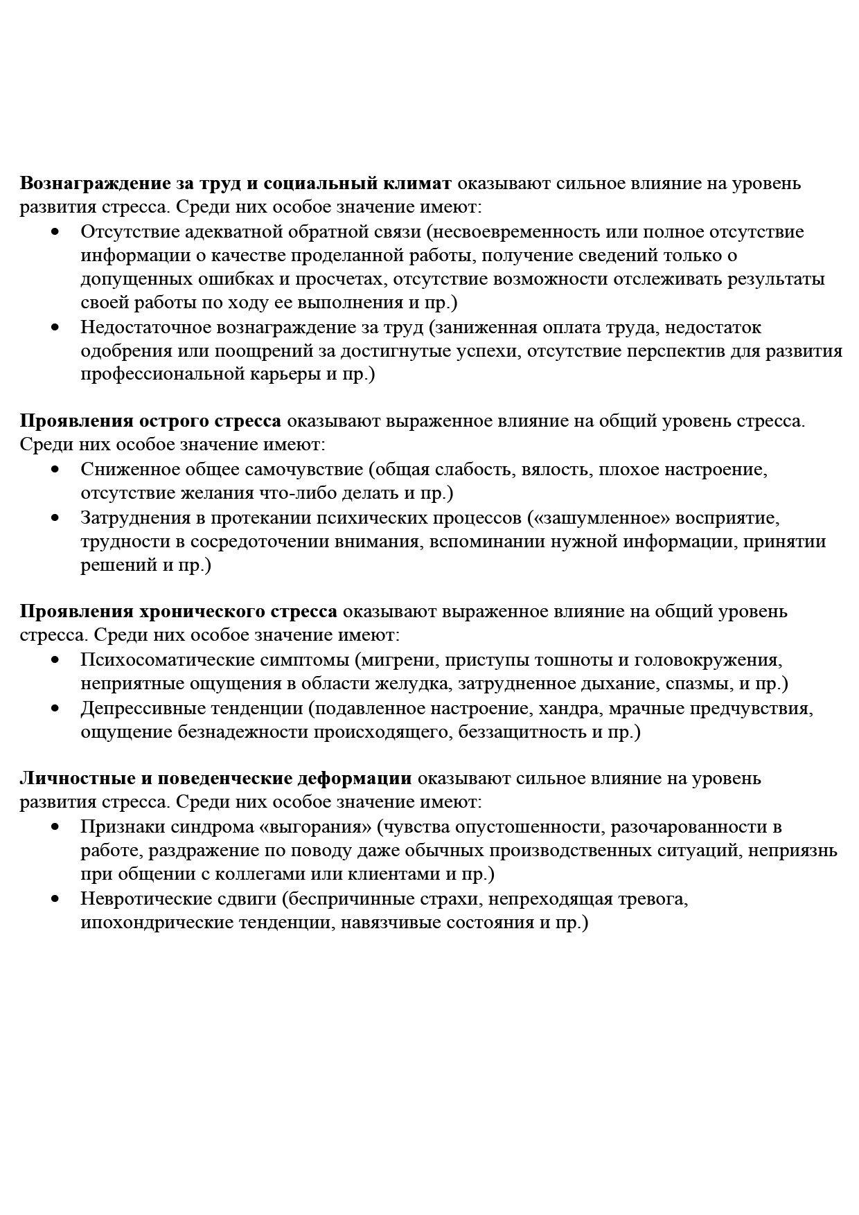 • деструктивную симптоматику острых и хронических стрессовых состояний;