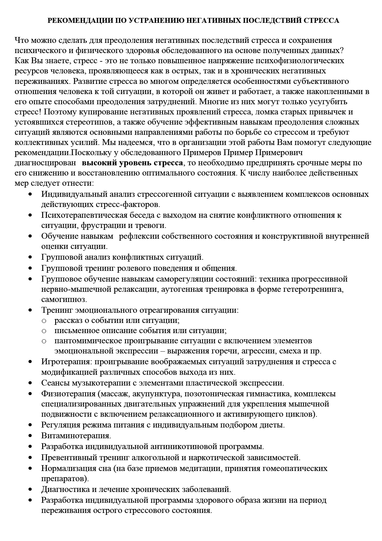 • фиксацию профессионально-личностных и поведенческих деформаций стрессового типа.