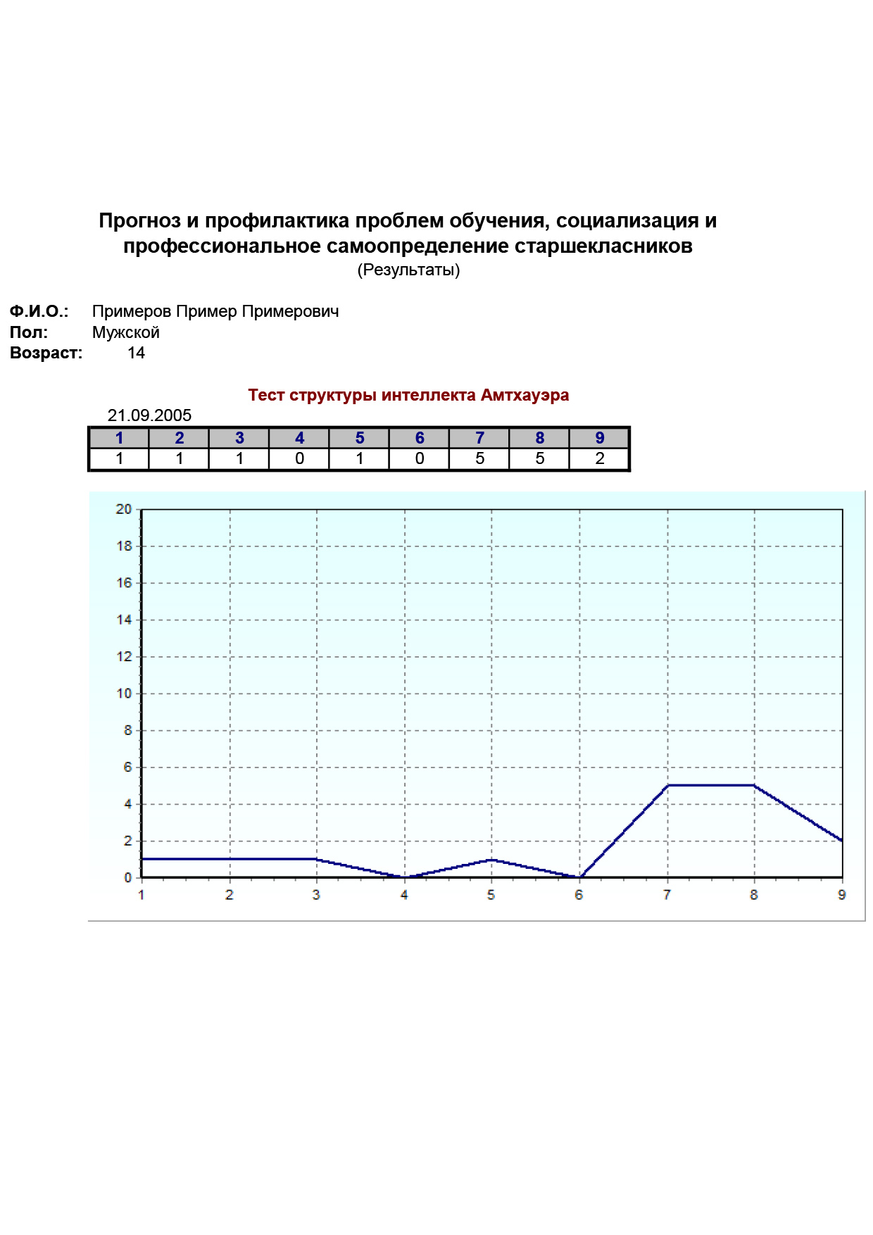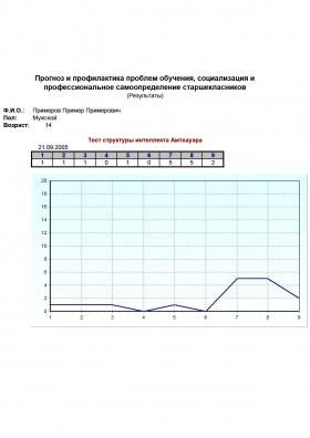 Этот диагностический комплекс предназначен для работы с учащимися 7–11 классов и направлен на оптимизацию развития, обучения и профессионального самоопределения старшеклассников. Обследование по методике позволяет получить углубленную индивидуальную характеристику интеллектуальных, личностных и нейродинамических особенностей учащихся, их творческого потенциала, а так же выявить способности к различным направлениям профессиональной деятельности. Методический комплекс помогает осознанному выбору жизненного пути, содержит рекомендации по развитию недостающих компонентов профессиональных способностей. Кроме того, диагностика дает информацию о причинах проблем во взаимоотношениях с одноклассниками, учителями, родителями и способах их решения.