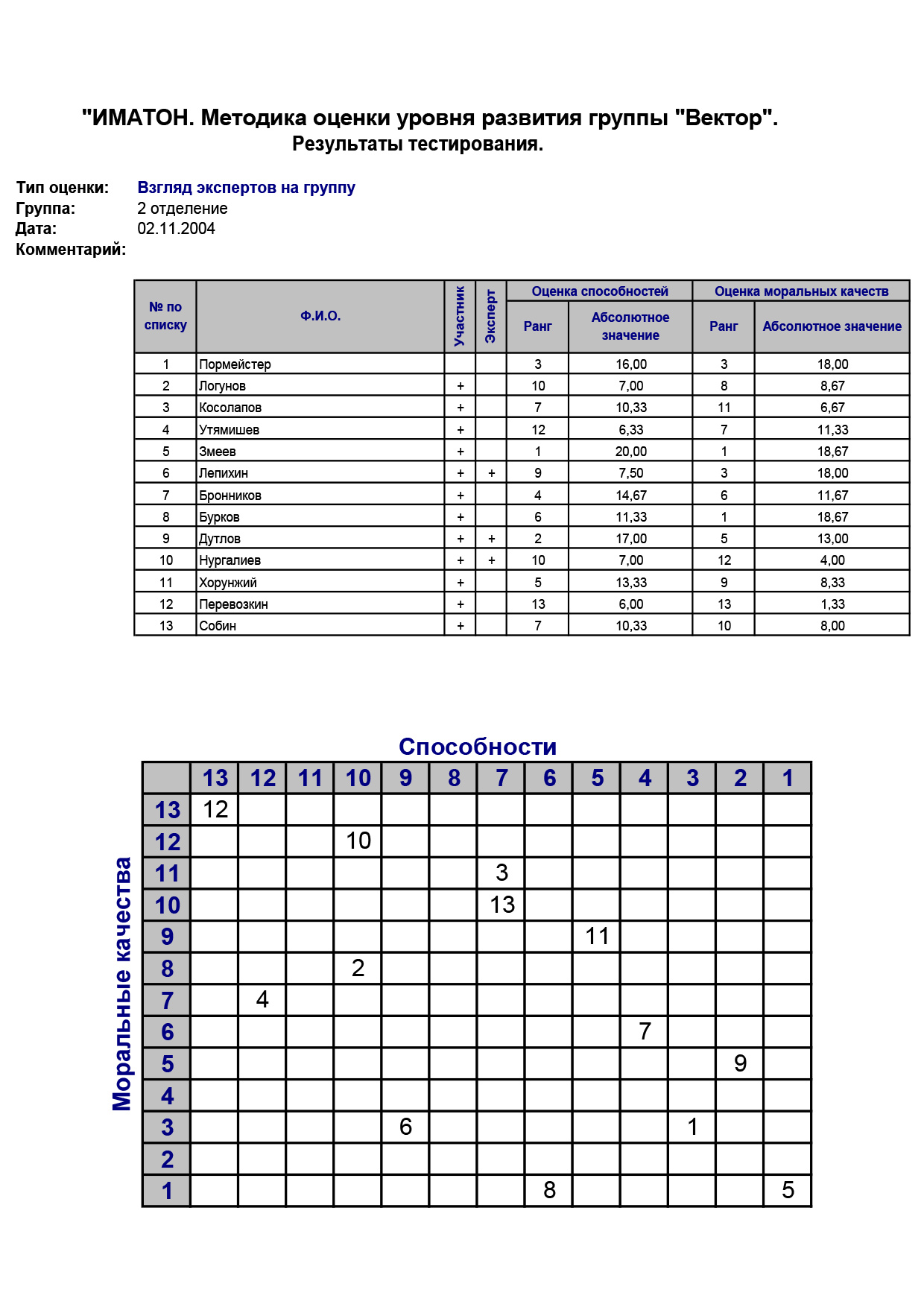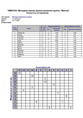 - Ранжирование членов группы по оценкам способностей и моральных качеств, то есть тем суммарным оценкам, которые получили члены группы от участников обследования.
