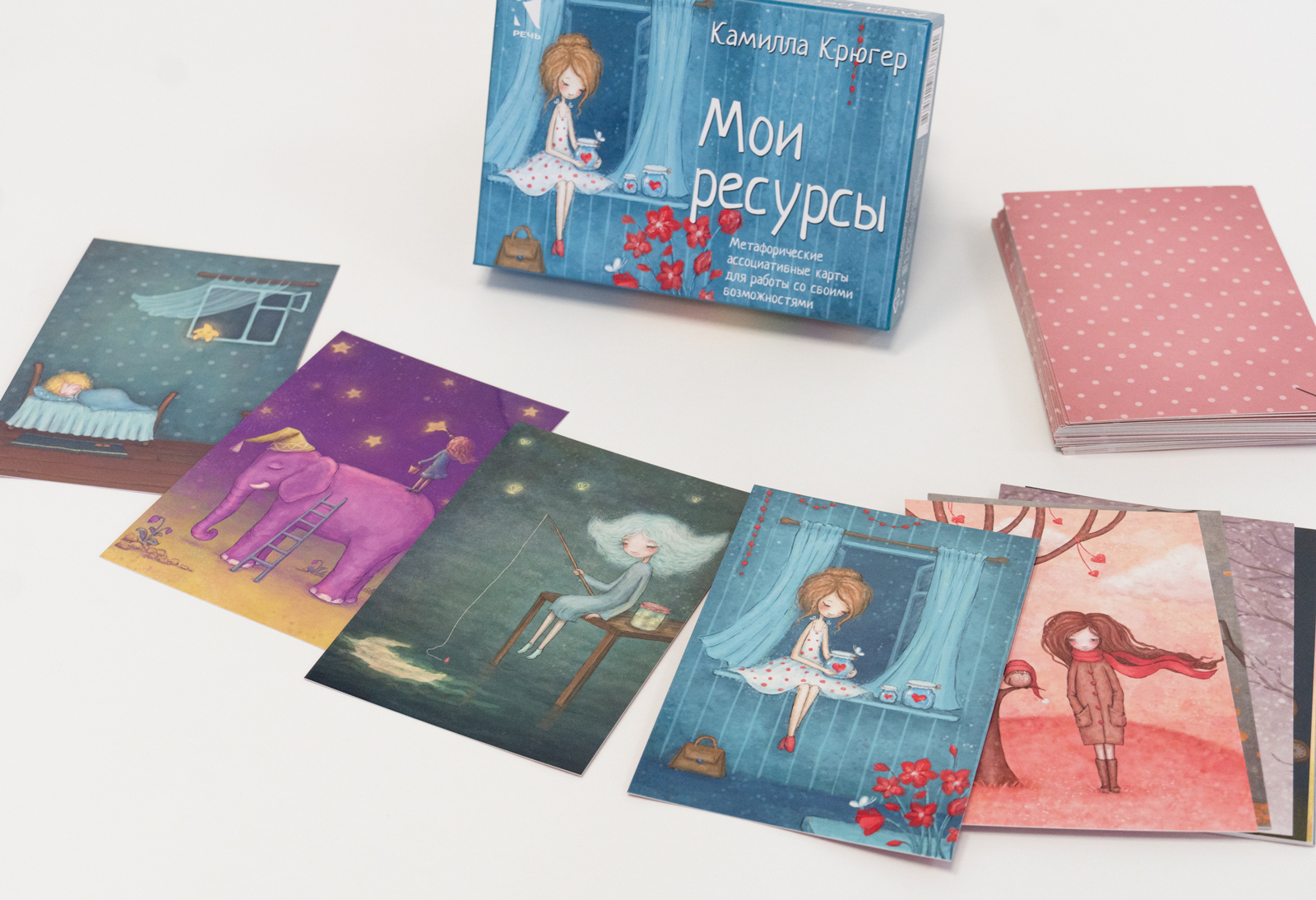 Образы на рисунках хрупкие, девичьи, прекрасно подходят для работы с девочками-подростками и при этом не ограничивают специалиста в консультациях взрослых клиенток: каждая из них сможет увидеть и рассмотреть себя в такой девочке с картинки. Карты могут использоваться как в ходе индивидуальных консультаций, так и в групповой работе (например,в женских ресурсных группах).