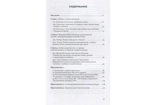 От авторов: Эта книга является частью проекта "Эльза", который берет свое начало с 2015 года. Именно тогда у нескольких специалистов, работающих в области помощи людям с тяжелыми множественными нарушениями развития, возникла идея оказывать дополнительную поддержку родным и близким таких людей. Было решено создать первую группу взаимопомощи. Эта группа стала основой для написания целого проекта по развитию взаимопомощи среди родителей людей с особыми потребностями. С 2016 года проект начал свою работу на базе ЧОУ ДПО "Социальная школа Каритас". Целью проекта стала психосоциальная и общественная поддержка инициативы родителей и близких родственников людей с нарушениями интеллектуального развития и множественными нарушениями через создание нескольких групп поддержки, которые по окончании проекта будут работать автономно и в сотрудничестве друг с другом. Сборник статей, который вы держите в руках, является продолжением и следствием нашей работы на протяжении двух лет. Книга призвана распространить сведения о том, как можно поддерживать самих себя и друг друга, каким образом родители могут объединяться для решения общих задач. Мы включили в нее личные истории родителей, описание способов организации и проведения групп взаимопомощи и опыт московской родительской организации "Дорога в мир".