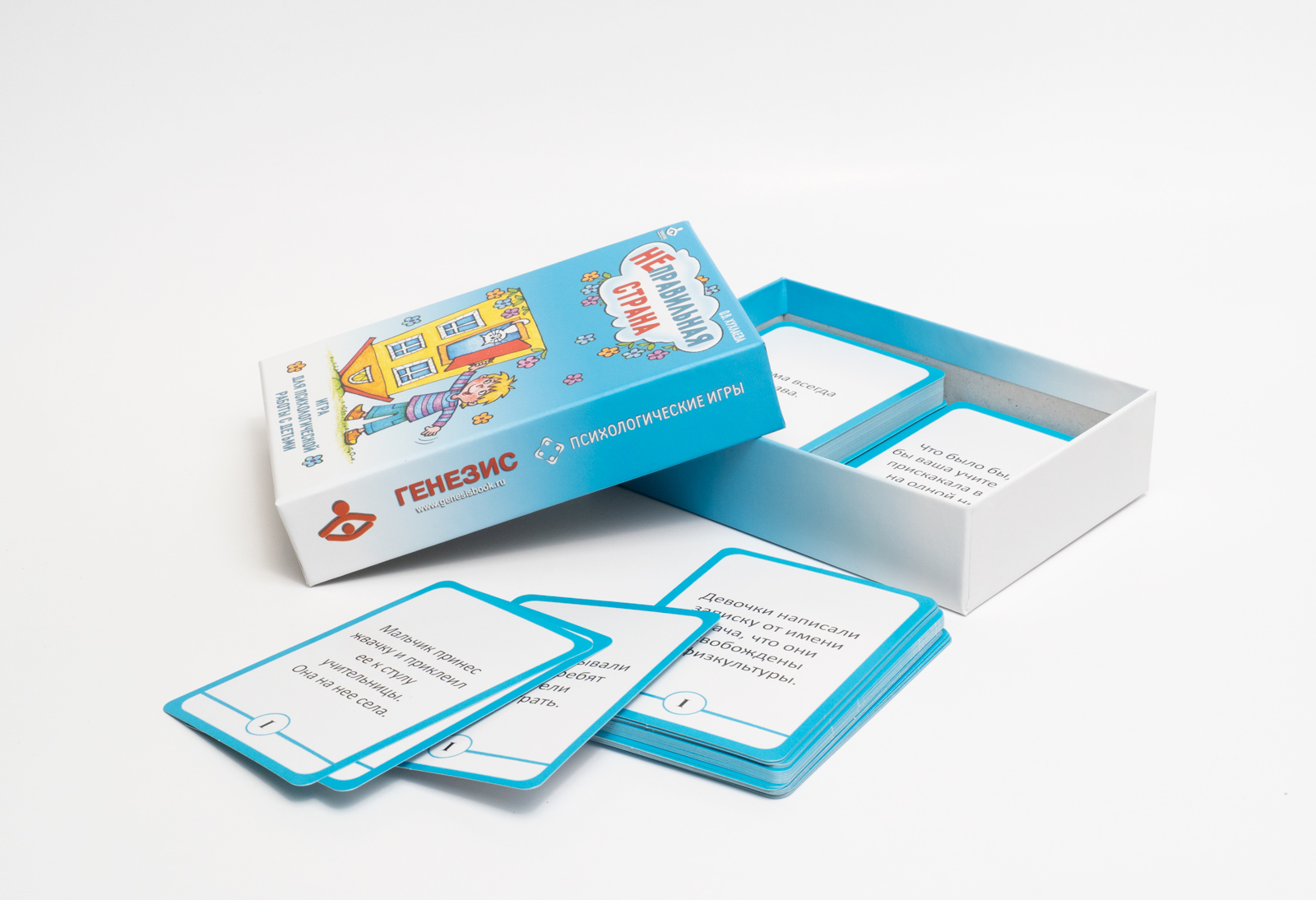 Игра направлена на психологическую работу с социальными страхами, отреагирование негативных чувств, осознание социальных норм и границ. В состав игры входит шесть комплектов карточек, которые позволят обсудить различные поступки, школьную жизнь, домашние дела, задать самые абсурдные вопросы, сочинить небылицы и поспорить с утверждениями. Вас ждет путешествие по удивительной стране. Главная ее черта: она – неправильная. Совсем-совсем. В этой стране можно рассказывать глупости, признаваться, что сделал что-то «не так», ведь здесь «не так» – это как раз то, что нужно. Все мы иной раз совершаем ошибки, нарушаем правила и говорим глупости, но есть дети, которые ошибки и нарушения приравнивают к трагедии. Речь идет в первую очередь о «хороших» детях «хороших», «правильных» родителей, предъявляющих к ребенку слишком жесткие требования: такие дети очень старательны и тревожны и очень боятся сделать что-нибудь не так. Иногда дети в таких семьях, наоборот, становятся неуправляемыми и начинают протестовать, нарушая любые правила. Наша игра предназначена прежде всего для детей «хороших родителей». В роли ведущего выступает психолог. Играть можно как с одним ребенком, так и с группой детей. Главное, чтобы взрослый давал спонтанные ответы, тем самым побуждая и детей проявлять спонтанность. Использовать игру можно на занятиях с детьми в школе, в психологических центрах, в ходе консультирования семьи.