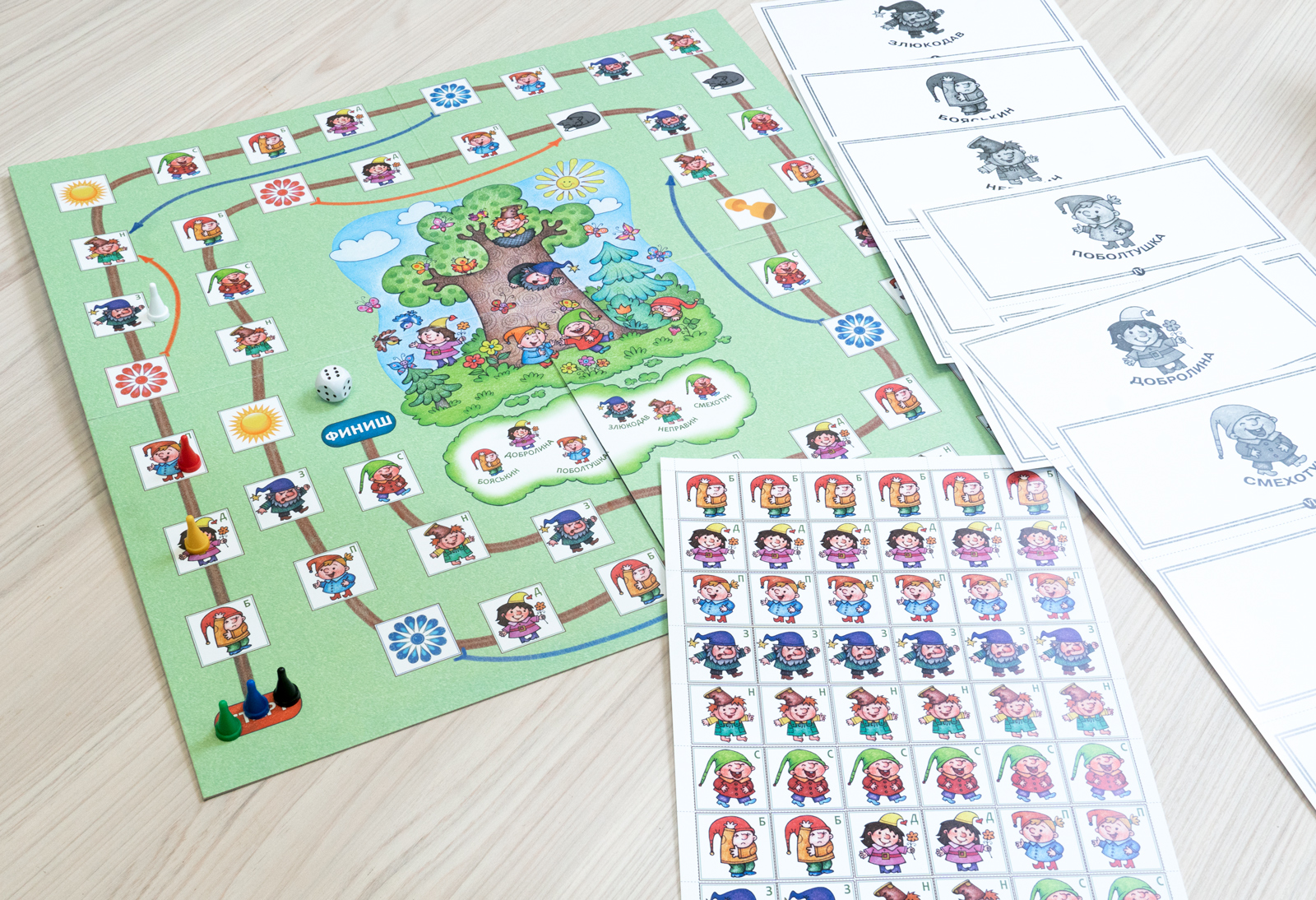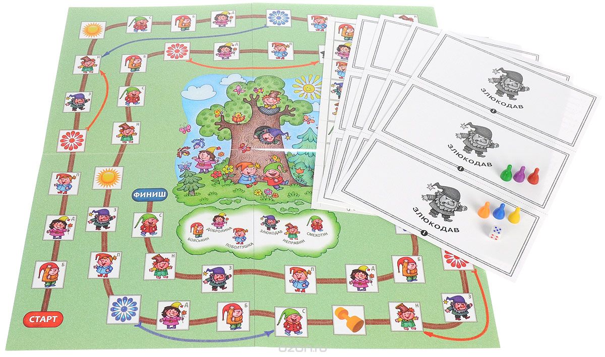 В этой игре можно и нужно злиться, бояться, делать ошибки, смеяться, быть смешным, болтать без умолку и делать добрые дела. Она позволит ребенку с вашей помощью справиться со страхами. Детей ждет путешествие по волшебному лесу, полному опасностей и загадок, ведь хозяйничают в нем шесть забавных гномов: каждый из них приготовил для игроков свои задания и не пустит дальше, если их не выполнить. Злюкодав попросит вас злиться, раздражаться и даже ругаться, Неправин – дурачиться и делать все шиворот-навыворот, Бояськин – пугаться и пугать других, вспоминая, чего же можно бояться, Поболтушка – улыбаться и рассказывать истории, Добролина – благодарить других игроков и говорить комплименты, а Смехотун – хихикать от души и смешить партнеров по игре. Игра направлена прежде всего на коррекцию разнообразных страхов у детей, а также на то, чтобы создать хорошее настроение, непринужденную атмосферу, помочь детям наладить контакт со взрослыми и между собой. Страхи серьезно усложняют жизнь детей, мешают полноценно развиваться и просто радоваться жизни. При этом нередко родители даже не догадываются, что их ребенок чего-то боится, замечая в основном только последствия страхов – болезни, снижение учебной мотивации, плохую успеваемость, нарушения поведения, коммуникативные трудности. И безуспешно пытаются бороться со следствиями, а не с причиной.