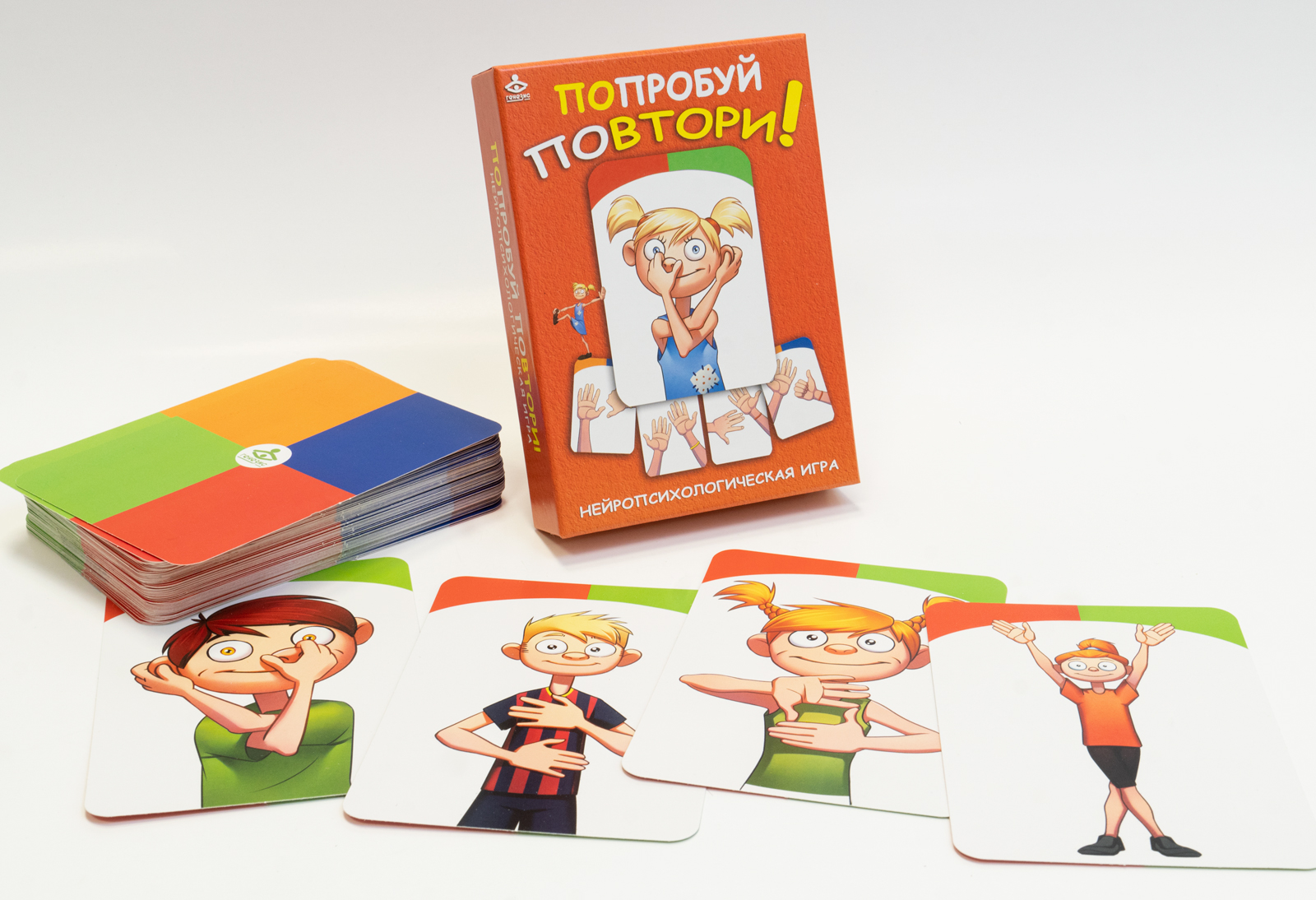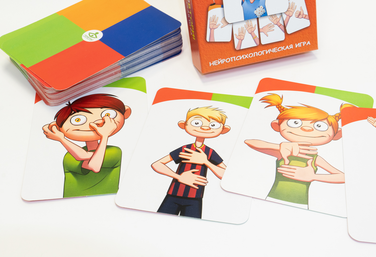 В этой игре участник должен воспроизвести положение рук или позу, которую он видит на картинке, для чего ему необходимо совершить некоторое конкретное движение. Воспроизведение нарисованных на карточках движений – задача нетривиальная. Трудность заключается не в том, что движения требуют особых физических способностей, а в их непривычности, непохожести на те, что люди осуществляют в быту каждый день. С первого раза некоторые движения не выполнит даже взрослый. Но трудная и при этом посильная задача поднимает настроение и рождает поиск, а поисковая активность, в свою очередь, вызывает возбуждение в глубинных структурах мозга, которые активизируют работу полушарий. Кроме того, игра способствует развитию внимания, пространственных представлений, улучшает реакцию. Набор движений, предложенный в игре, часто используется психологами в программах по психомоторному развитию и нейропсихологической коррекции детей и, несмотря на простоту и увлекательность, является эффективным инструментом работы. Проводить игру могут и неспециалисты, поскольку она проста и понятна. Игра предназначена для детей старшего дошкольного, младшего школьного возраста, подростков и даже взрослых. Играть можно как индивидуально, так и в группе.