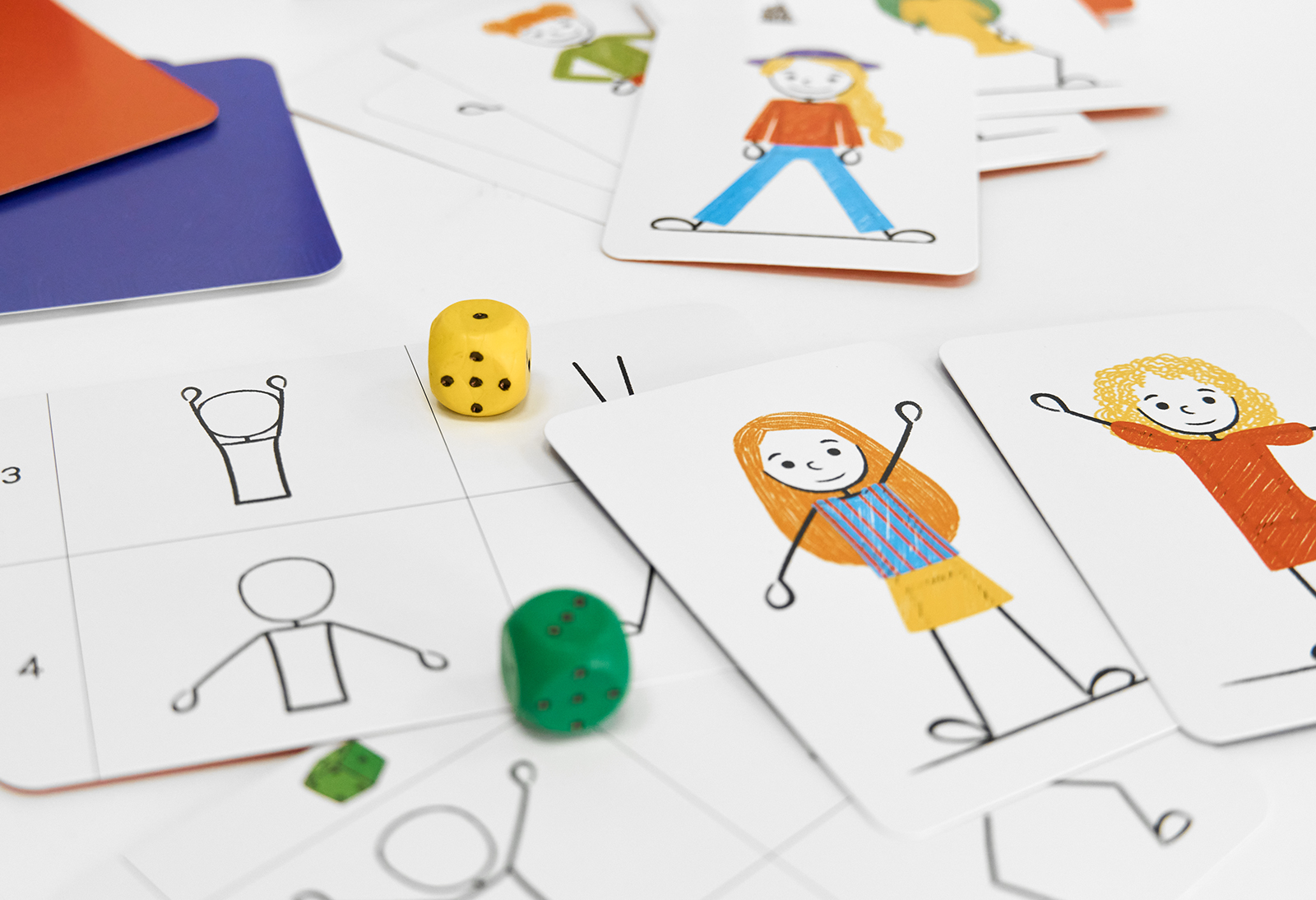 Сыграем в прятки с нарисованными человечками? Только будьте внимательны, не попадитесь на их уловки! Хитрые человечки замерли в похожих позах, а найти нужно только одного. Кидайте кубики, ищите выпавшие значения в таблице-«расшифровке» и скорее хватайте карточку с подходящим человечком.