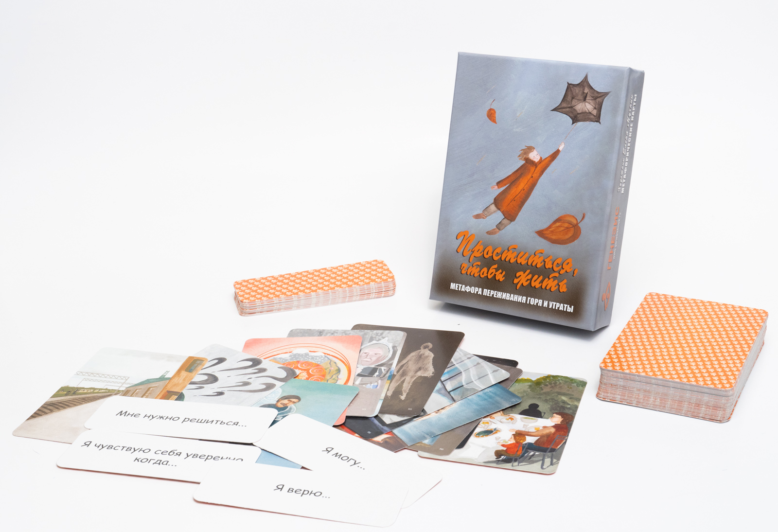 Перед вами колода метафорических ассоциативных карт, специально созданных для психологической работы с горем и утратой. Она содержит 64 изображения, метафорически отражающих различные аспекты переживаний человека при утрате, и 32 вспомогательные карточки с неоконченными фразами. При создании колоды авторы стремились к максимально возможной многозначности изображений, поэтому многие из карт колоды покажутся разным людям или даже одному и тому же человеку в разных состояниях как ресурсными, так и наоборот – выражающими негативные переживания. Потери и утраты – нерадостные, нежеланные, но неизбежные спутники нашей жизни. Каждый из нас рано или поздно познает горечь потери и боль расставания. И вряд ли среди помогающих специалистов найдется кто-то, кто сумеет избежать этой темы в своей работе. Говоря об утрате здесь и далее, мы приводим это понятие в широком контексте: не только смерть близкого человека, но и любая потеря или внезапное расставание, последствия которых болезненны и нежелательны для человека. Список тем, которые охватывает психологическая работа с утратой, обширен: потеря близкого человека (смерть, развод, расставание, разрыв отношений);потеря образа себя ; потеря чувства безопасности (внезапные и вынужденные перемены, переезды, разводы, измены, попадание в зону военных действий, стихийные бедствия); потеря будущего (утрата близкого человека, терминальные диагнозы). Несмотря ни на что утрату – какой бы огромной и тяжелой она ни была – можно пережить. Завершенная утрата (всегда!) оставляет нас более сильными, чем мы были до этого. Она становится пусть и печальным, но опытом, на который мы можем опираться и через который мы растем. И даже если утрата невосполнима и необратима, есть драгоценные воспоминания, есть благодарность и память. И есть наш внутренний диалог с тем, что нам дорого, есть продолжающееся влияние утраченного на нашу жизнь. Попрощаться с чем-то или кем-то – не значит забыть. Это значит принять необратимость случившегося и вынести из него лучшее. Чтобы жить дальше.
