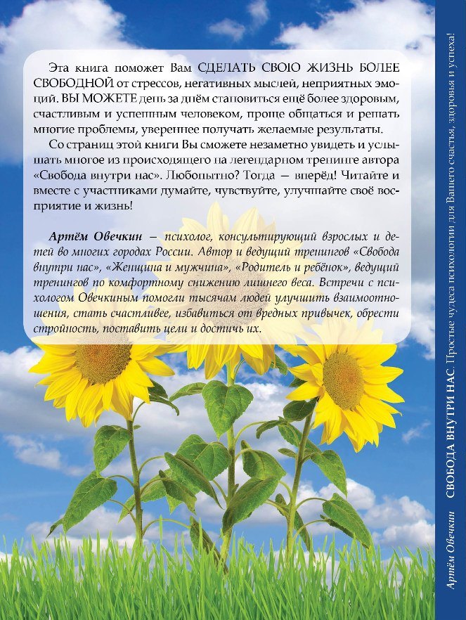 Эта книга поможет сделать жизнь более свободной от стрессов, негативных мыслей, неприятных эмоций, проще общаться и решать многие проблемы, увереннее получать желаемые результаты. Со страниц этой книги Вы сможете незаметно увидель и услышать многое из происходящего на легендарном тренинге автора «Свобода внутри нас». Любопытно? Тогда - вперед! Читайте и вместе с участниками думайте, чувствуйте, улучшайте свое восприятие и жизнь!