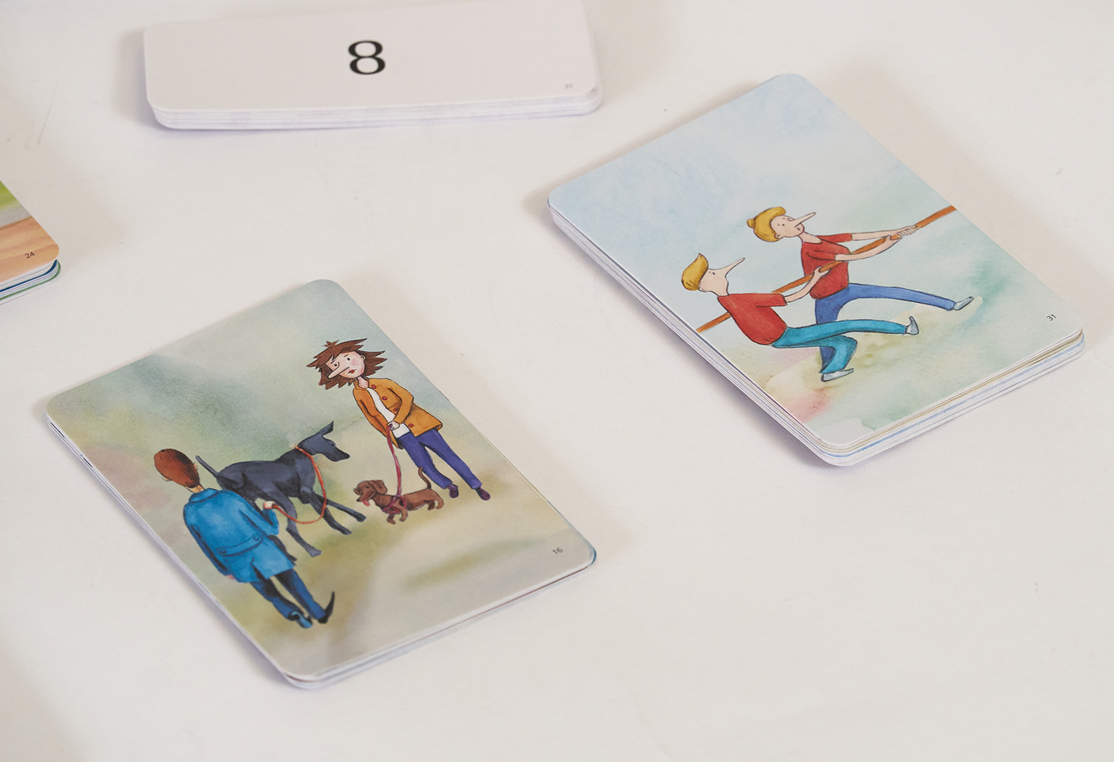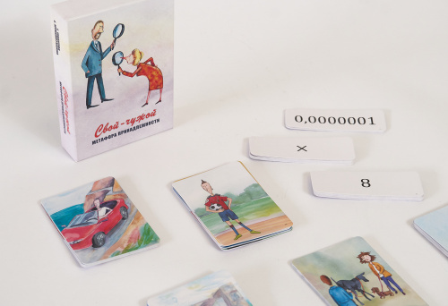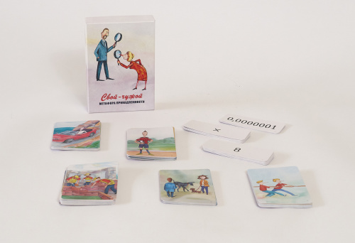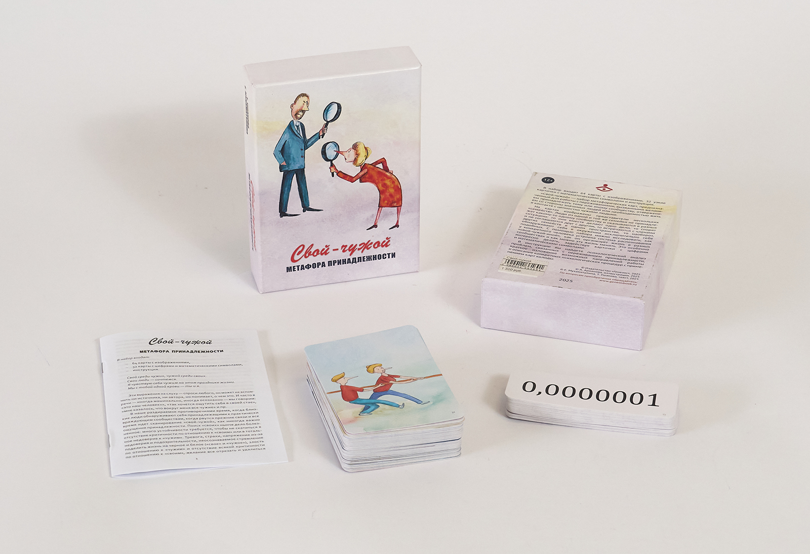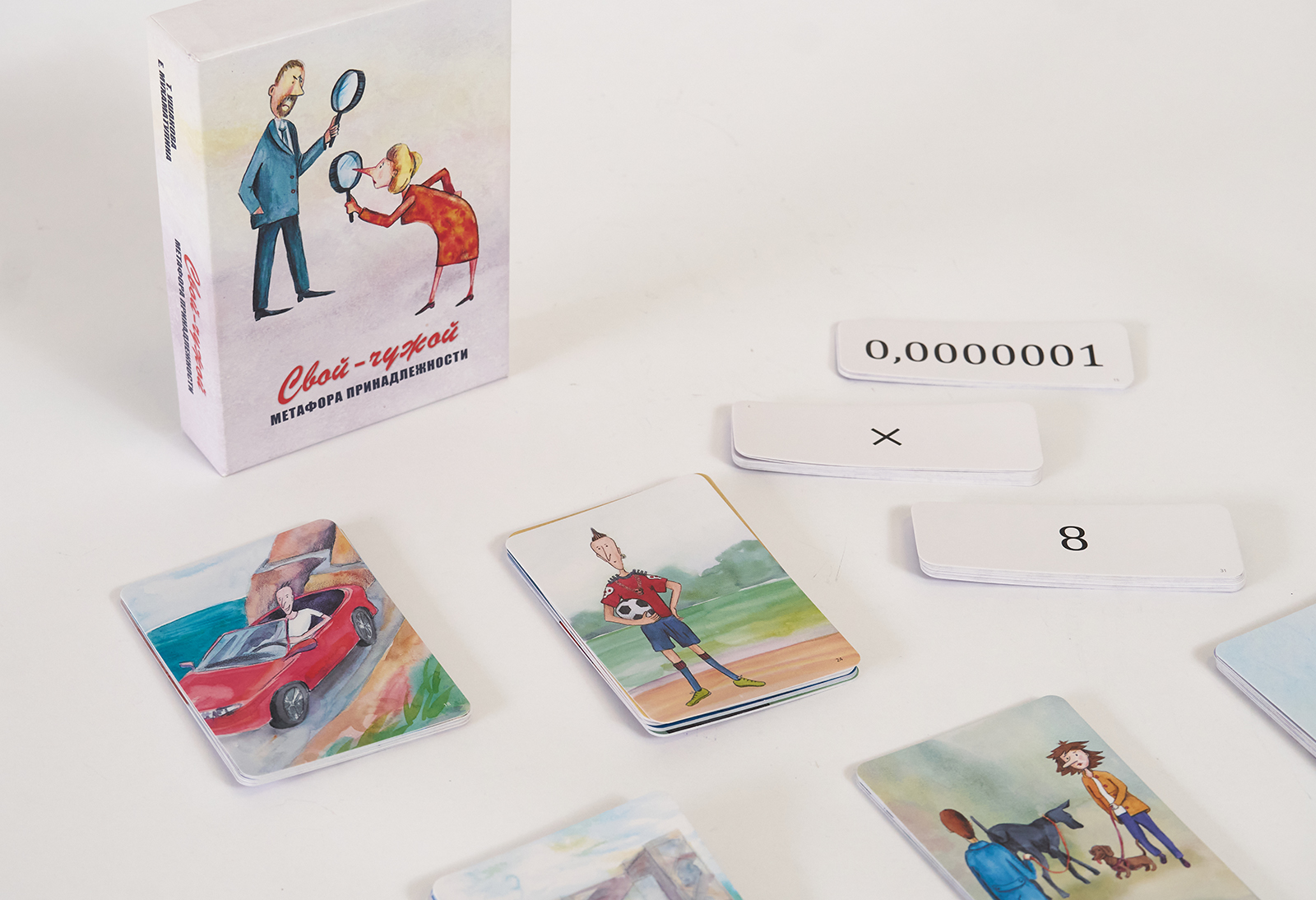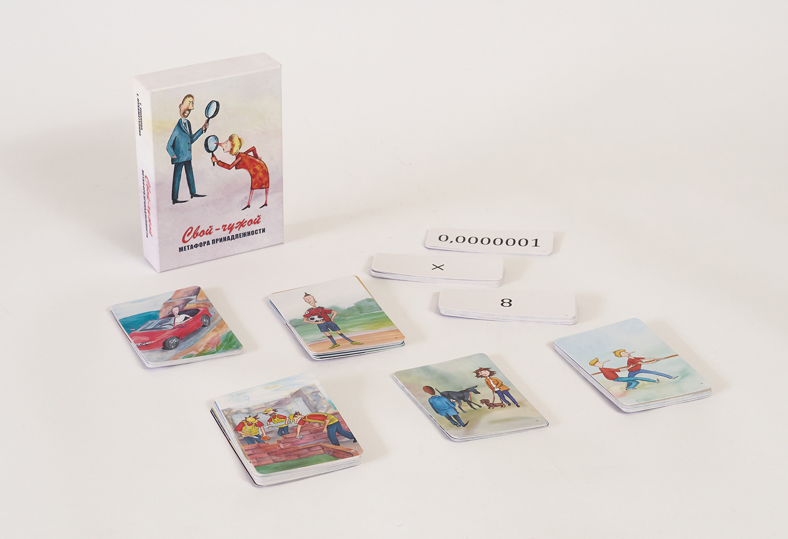 Набор метафорических карт, предназначенный для работы с переживаниями, вызванными желанием принадлежать тому или иному сообществу, отвержением со стороны значимых людей или необходимостью жить в контакте с ценностно чужими людьми. На картах изображены представители нескольких «семейств». Люди из одной и той же семейки не принадлежат какому-то одному сообществу и оказываются в разных ситуациях: то они вместе делают одно дело, то спорят и не соглашаются друг с другом, то встречаются с членами других семейств в одном пространстве, то наоборот, обнаруживают себя в окружении исключительно себе подобных. С помощью набора можно исследовать, как у конкретного человека устроена система распознавания «свой-чужой-иной», как он организует жизнь в разных сообществах, и как можно эту жизнь менять. Это особенно интересно делать, задействуя карточки с цифрами и математическими символами.