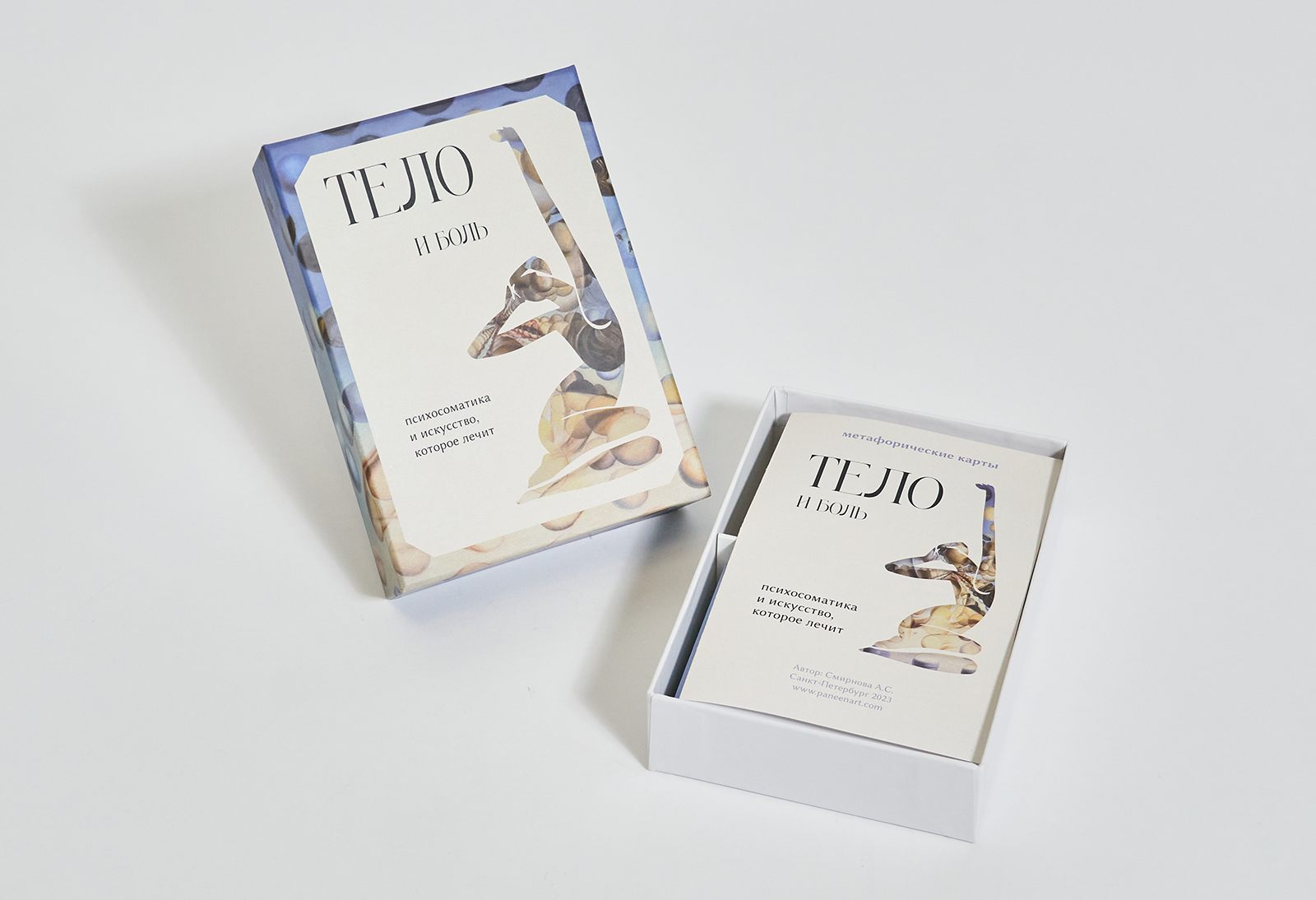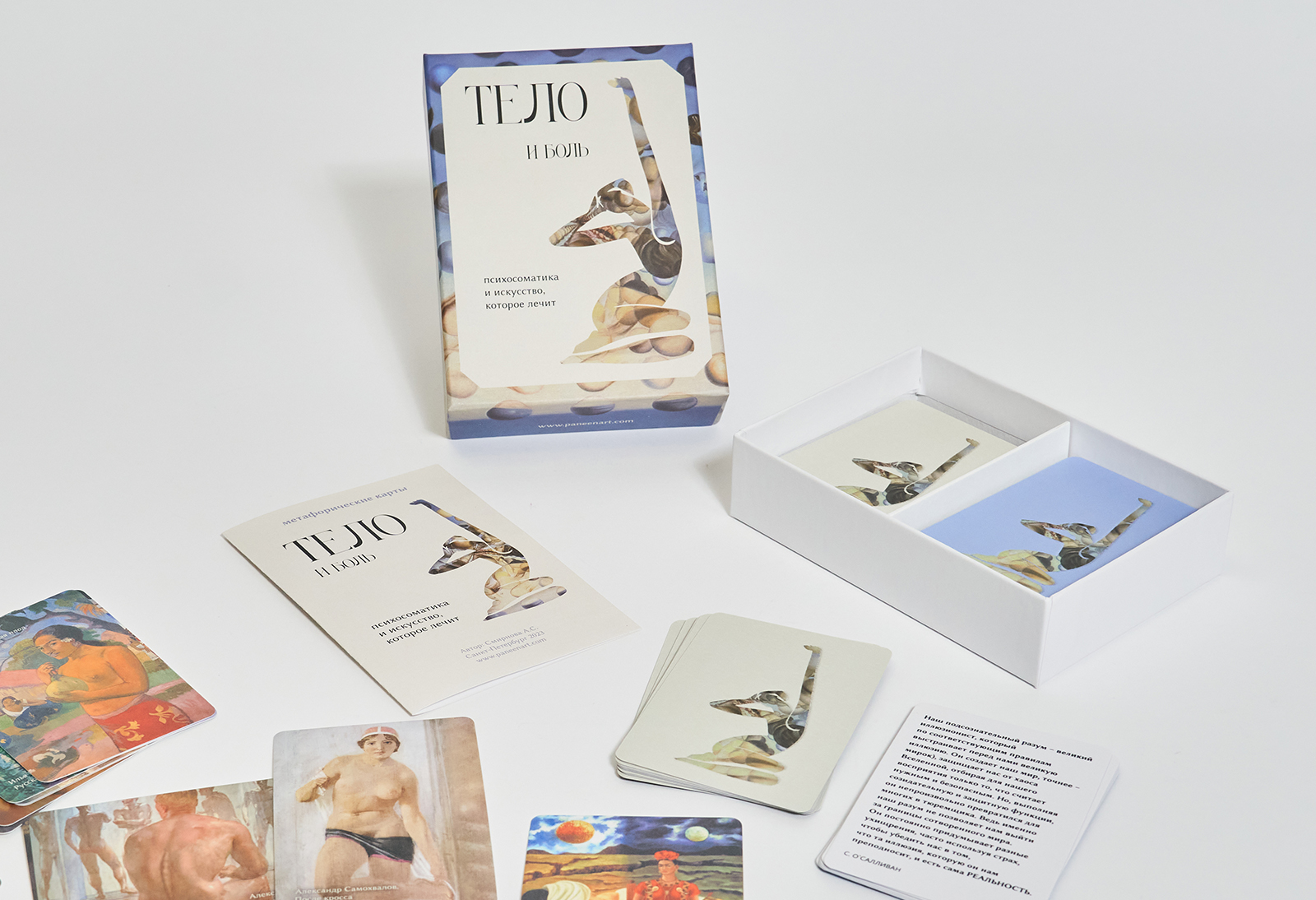 Колода с искусством призвана облегчить восприятие теоретического материала и вызывать индивидуальные ассоциации. Колода собрана в тематике тела и эмоций.