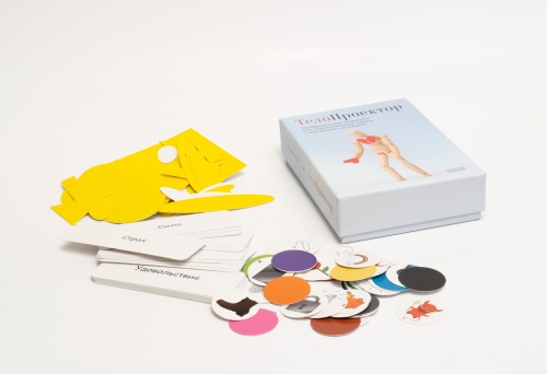 «ТелоПроектор» - простой, универсальный и пластичный инструмент психологической работы, способствующий установлению контакта с клиентом, преодолению сопротивления; позволяющий провести ориентировочную диагностику и начать терапевтическую работу. Алгоритм работы прост: клиент выкладывает из геометрических фигурок образ человека; выбирает карточки с названиями чувств, которые наиболее точно передают его состояние; подбирает метафорические изображения этих чувств и размещает их на теле получившейся фигурки. При необходимости клиент трансформирует получившийся образ. В ходе работы клиент постепенно начинает лучше понимать себя и делает первые шаги в направлении гармонизации собственного состояния и решения своих проблем. Решается задача распознавания внутренних состояний и их трансформации в ресурсные, создается основа для дальнейшей более глубокой работы. Комплект предназначен для работы со старшими подростками и взрослыми.