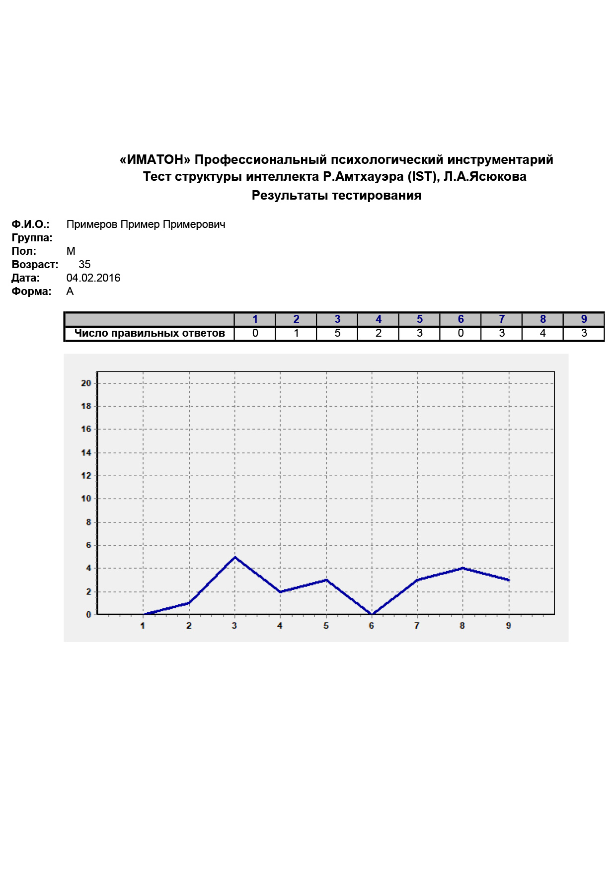 Тест структуры интеллекта Амтхауэра (IST) предназначен для диагностики и исследования уровня и структуры интеллектуальных способностей людей в возрасте от 13 до 60 лет в целях профессиональной ориентации и профотбора.