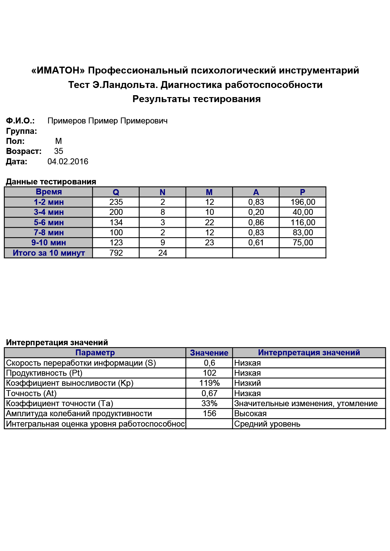 • Методическое руководство «Тест Ландольта. Диагностика работоспособности», В.Н. Сысоев