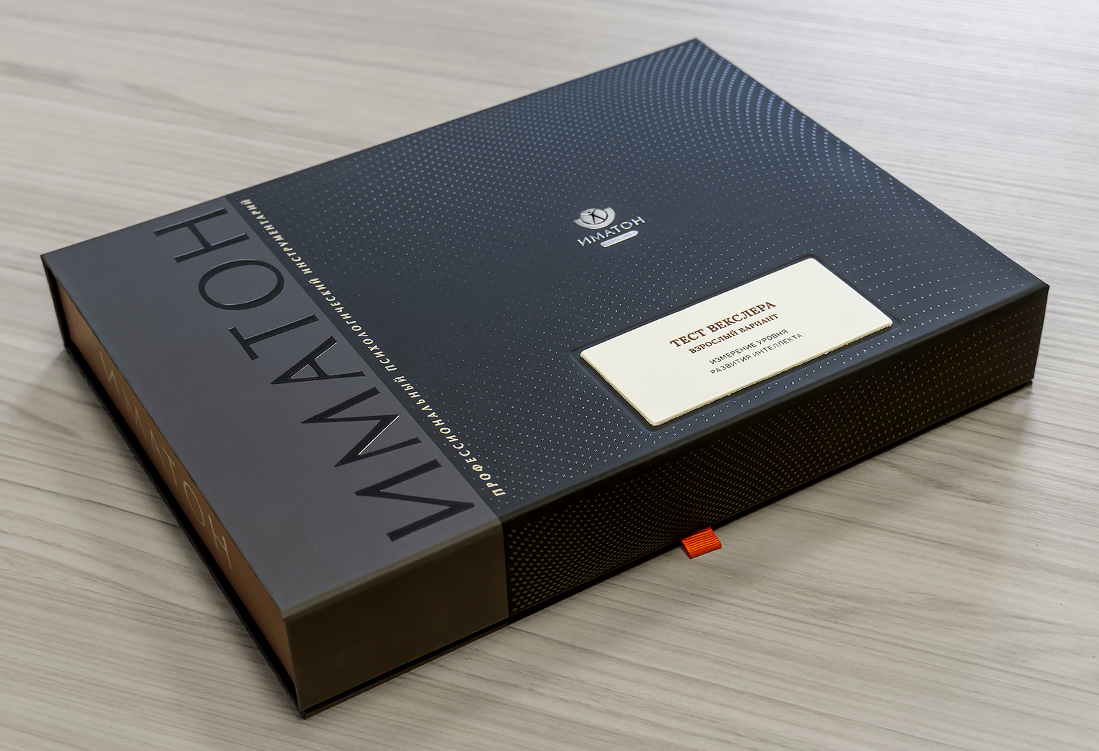 • Удобная коробка с магнитным клапаном обеспечивает компактное, эргономичное и эстетичное хранение. Стимульный материал к каждому субтесту имеет свой отдельный кейс. Бланки ответов и фиксации результатов позволяют быстро и удобно обрабатывать результаты тестирования, хранятся на флеш-накопителе – их можно распечатать в любое время и в любом количестве.