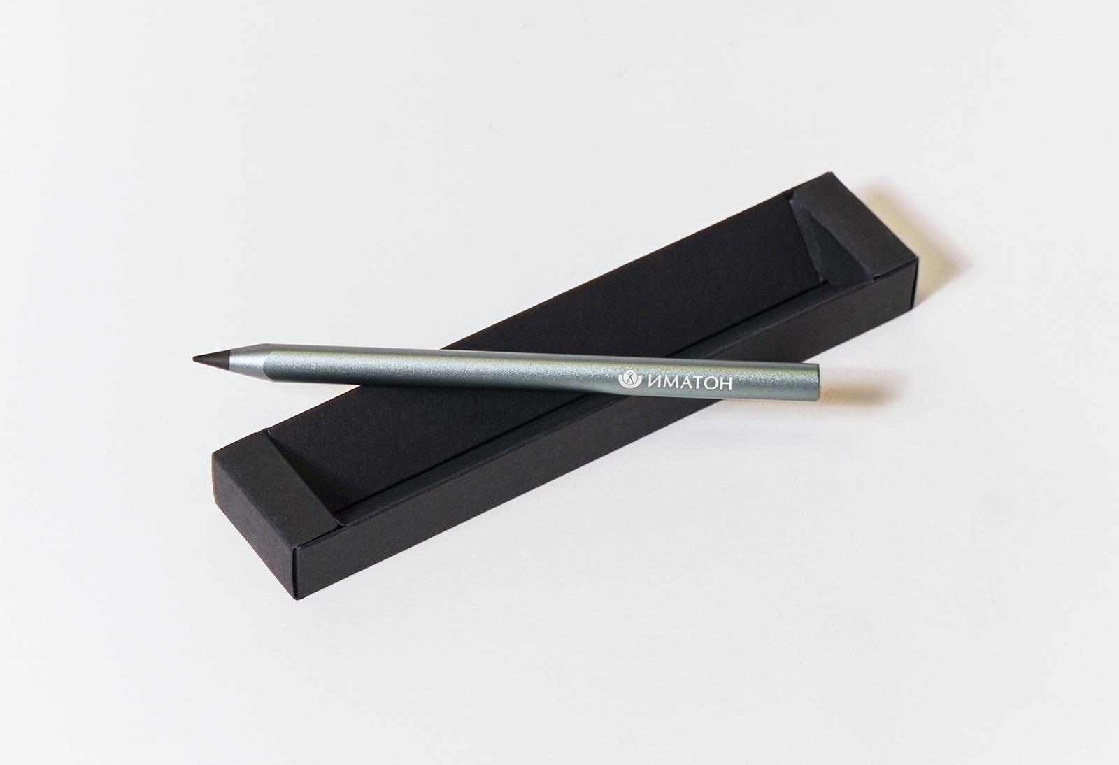 Вечный карандаш с фирменным логотипом Компании «‎Иматон»‎ для самых важных пометок и записей, который не подведёт в ответственный момент. Наконечник из карбона не требует заточки и не размазывается.
