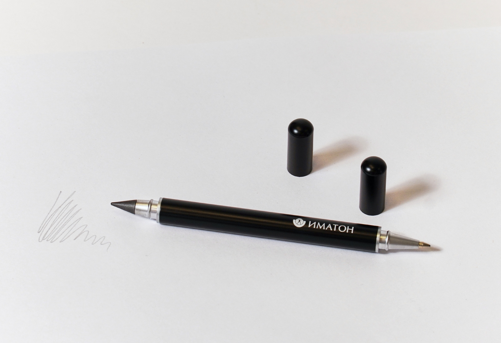 Стильный аксессуар 2 в 1 с фирменным логотипом Компании «‎Иматон»‎: с одной стороны - ручка, с другой - вечный карандаш, который не подведёт в самый ответственный момент! Создан для самых важных пометок и записей.
