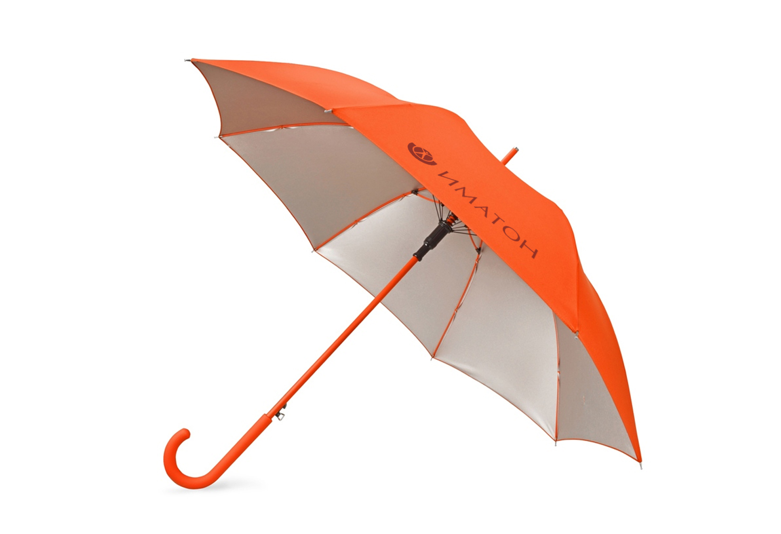 Стильный и яркий зонт-трость с фирменным логотипом Компании «Иматон», который надежно защитит от непогоды и поднимет настроение в дождливый день.