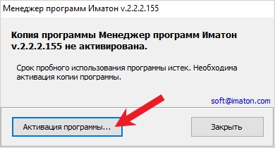1. Запустите «Менеджер программ Иматон» и нажмите кнопку «Активация программы».