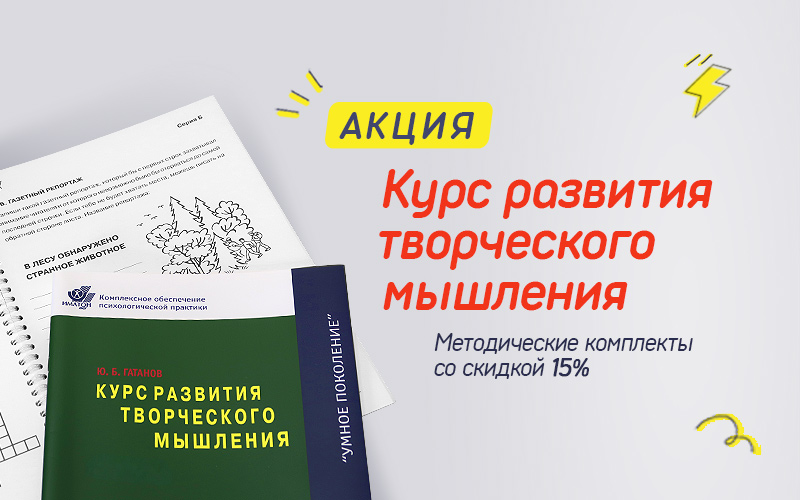1 сентября 2020В преддверии нового учебного года «Курс развития творческого мышления» со скидкой!Незаметно наступил сентябрь, вместе с его учебными планами, интересными задачами и новыми открытиями! Компания «Иматон» подготовила специальную акцию для осуществления новых педагогических целей с использованием уникального Курса развития творческого мышления - единственной в России программы, базирующейся на самой полной и популярной на сегодняшний день модели интеллекта Дж. Гилфорда!