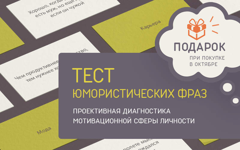 1 октября 2020Дарим подарок при покупке обновленного Теста юмористических фраз в октябреКомпания «Иматон» представляет обновленную комплектацию методики «Тест юмористических фраз»: