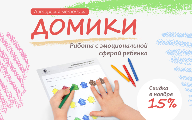 1 ноября 2020Методика «Домики» с эксклюзивной скидкой только в ноябре!Детство – время, когда эмоции во многом управляют всеми сторонами жизни ребенка. Особенно это касается периода дошкольного детства, работать с которым специалистам бывает непросто ввиду отсутствия подходящих методик. Компания «Иматон» выпускает инструмент, который позволяет проводить диагностику детей, начиная уже с 4-летнего возраста, и до 12 лет. Методика «Домики» разработана детским психологом Ореховой О. А. для оценки эмоциональной сферы ребенка и базируется на цвето-ассоциативном эксперименте Эткинда А.М. для анализа отношений. Методика обеспечивает выявление источников эмоциональных проблем для разработки программ коррекционной работы. Помимо диагностического, тестирование обладает психотерапевтическим эффектом, позволяя ребенку выразить при раскрашивании домиков собственное эмоциональное состояние, минуя психологические защиты.