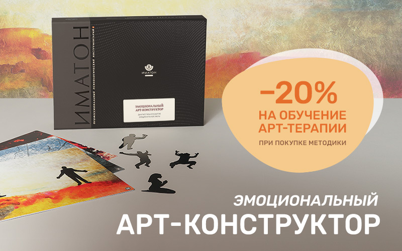 1 марта 2021При покупке «Эмоционального арт-конструктора» дарим скидку на обучение по программам арт-терапии в Институте «Иматон»!Эмоциональный арт-конструктор – уникальный авторский арт-терапевтический комплекс, включающий в себя практическую технологию диагностики, психокоррекции и развития эмоциональной сферы у лиц разного возраста. В качестве стимульного материала используются насыщенные эмоциональной информацией абстрактные живописные фоны и силуэты человеческих фигур. Результаты тестирования позволяют выявить уровень развития навыков эмоционального восприятия, эмпатии, художественно-образного мышления.