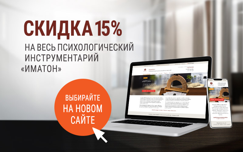13 апреля 2020Компания «Иматон «Профессиональный психологический инструментарий» запускает новый сайт и объявляет скидку -15% на все тесты и методики!Дорогие коллеги и друзья!
